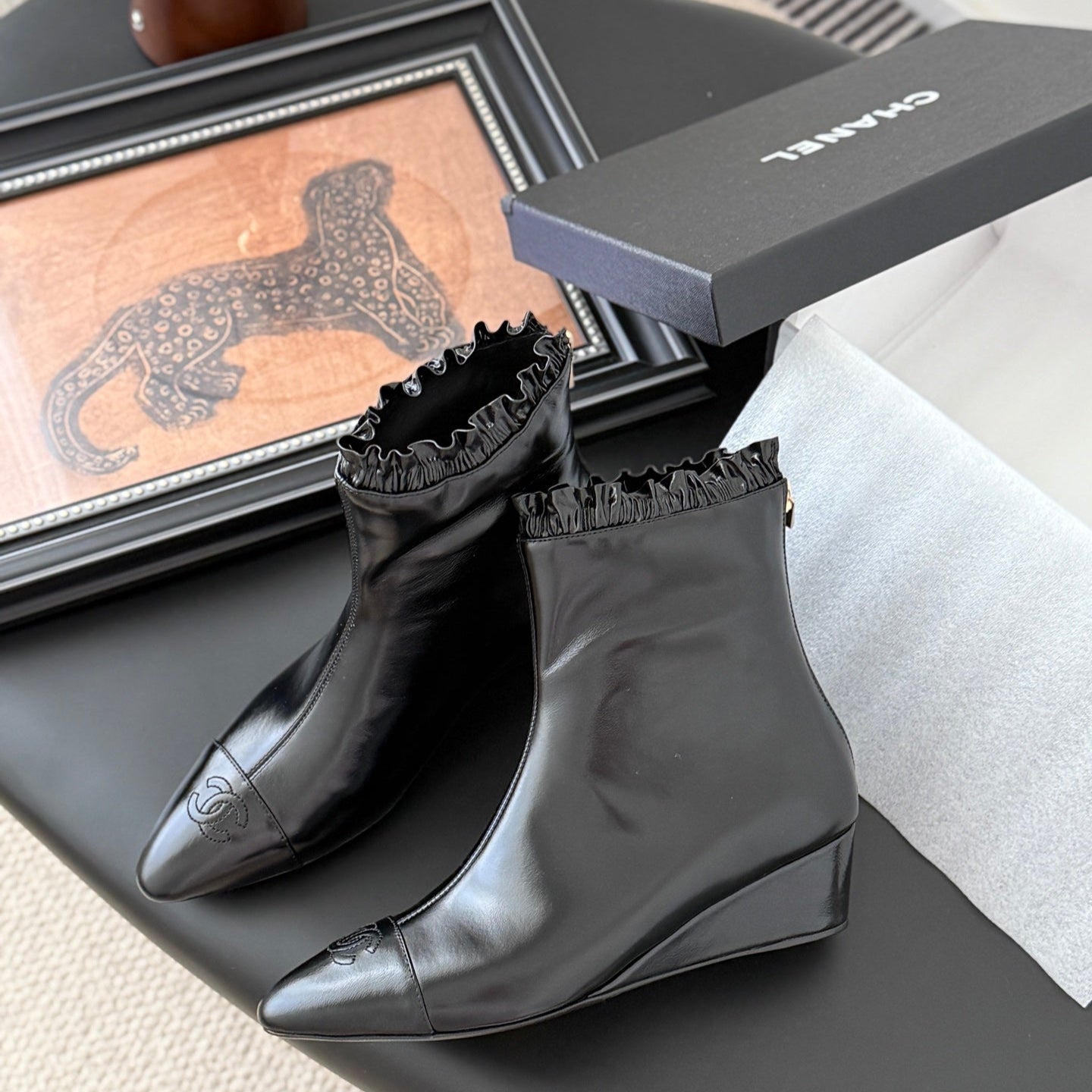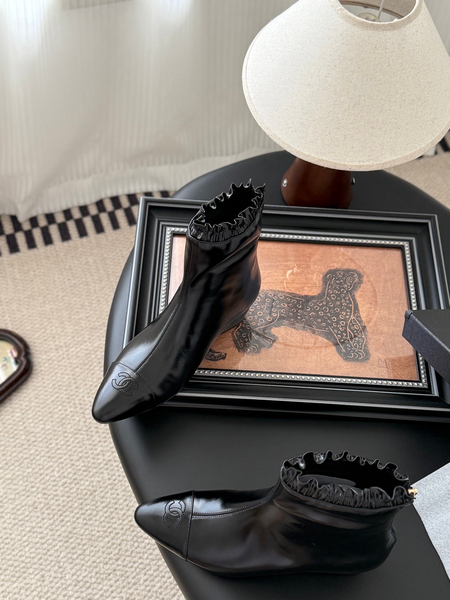 - Material: patent sheepskin