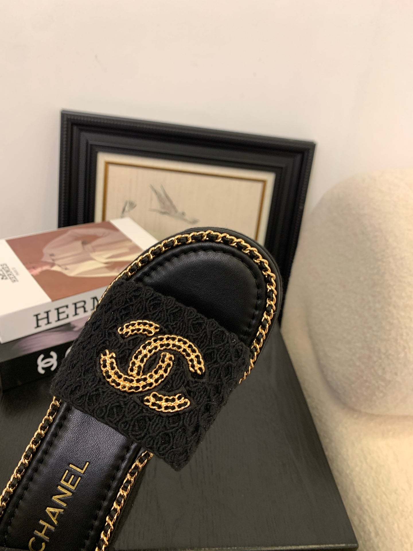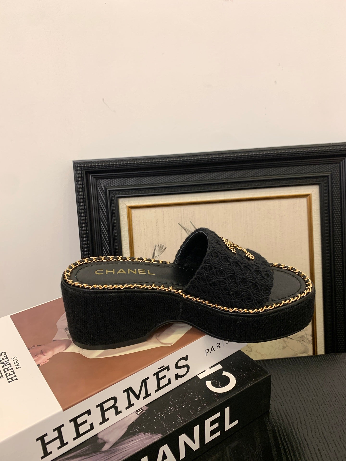 CC 25 Platform Slippers Black Lambskin 310383