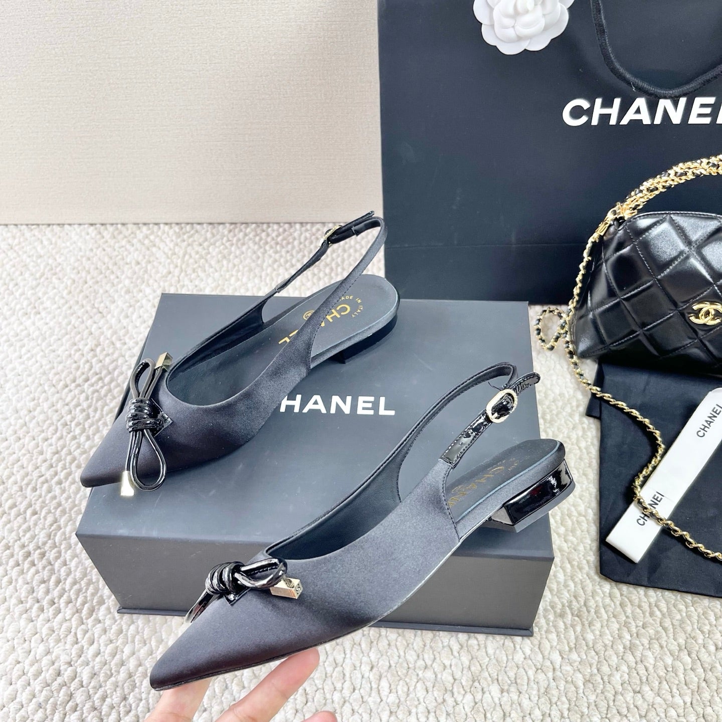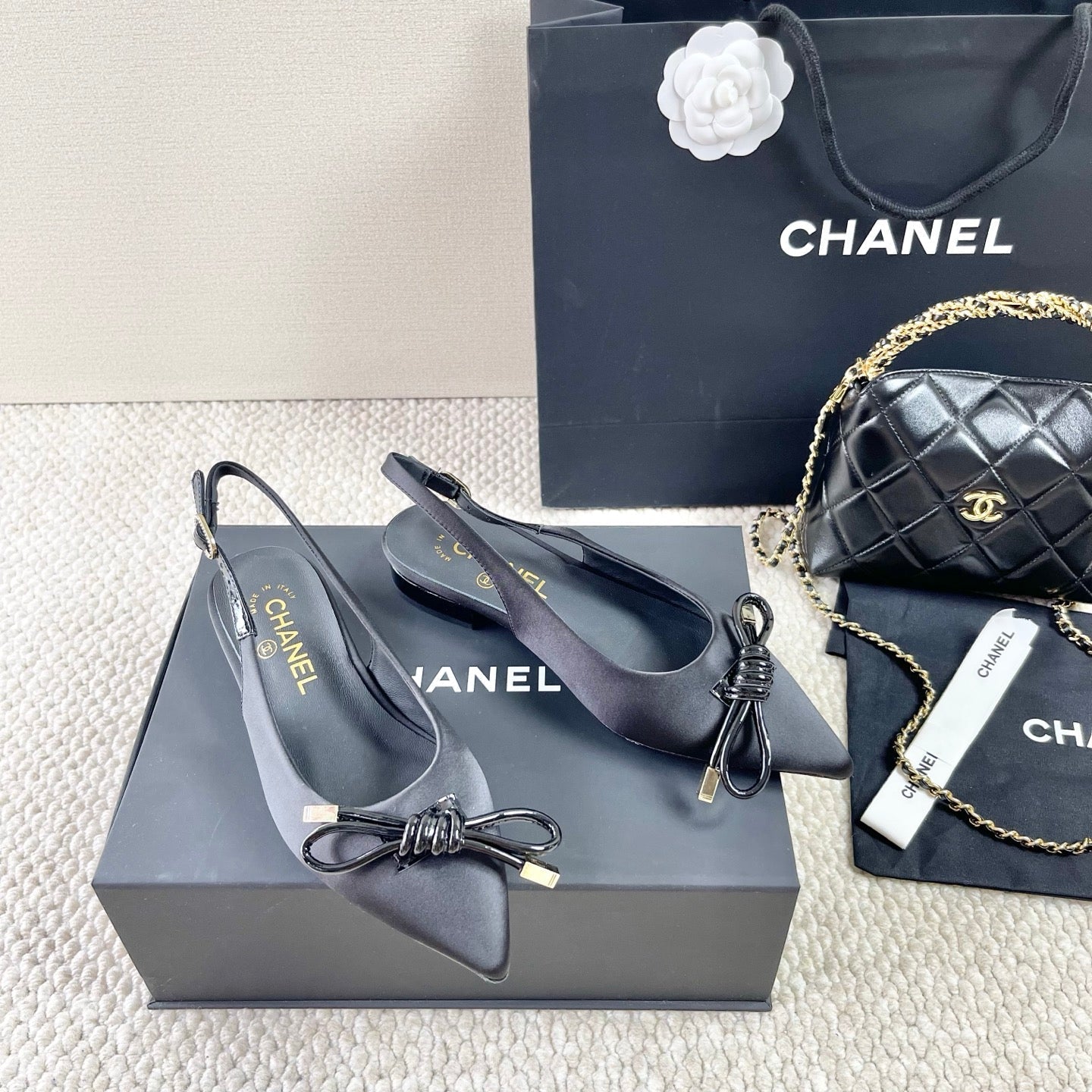 CC 25 Slingback Flats Black Silk 330921