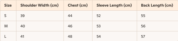 - Size : S, M, L