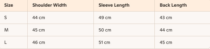 - Size : S, M,L