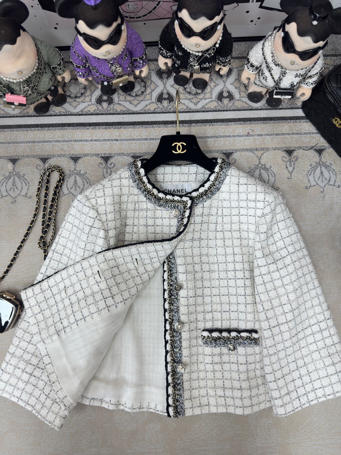 CC 25 Tweed Plaid Jacket White Cotton Polyester 251871