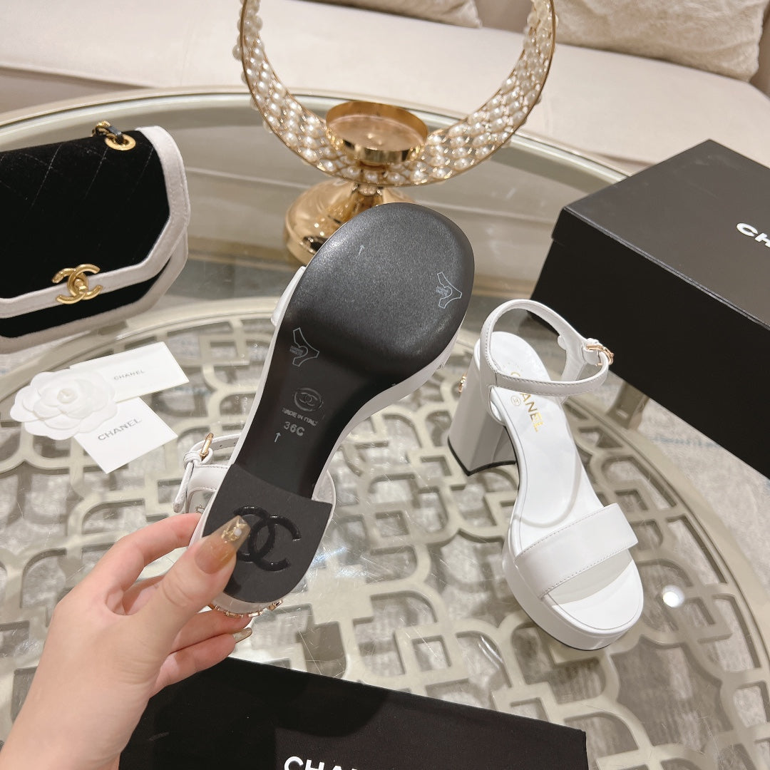 CC 25C 10CM Mid Heed Sandals White Italian Leather 213319