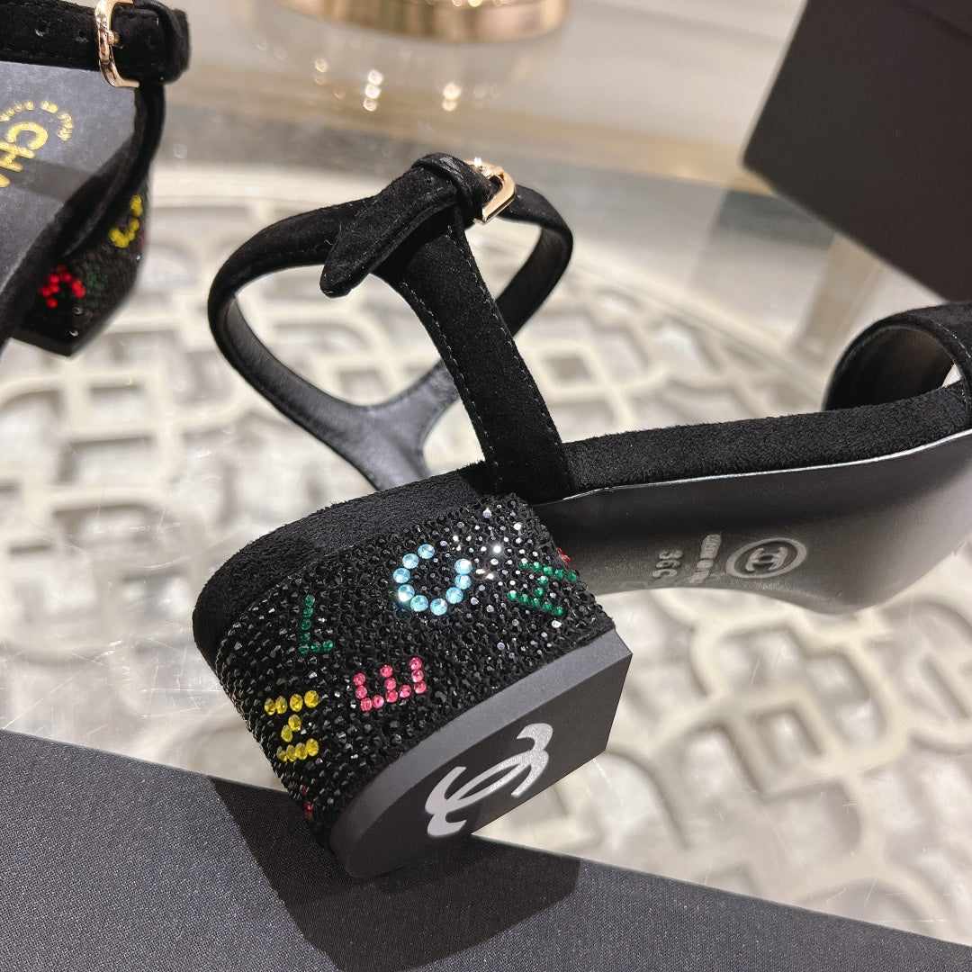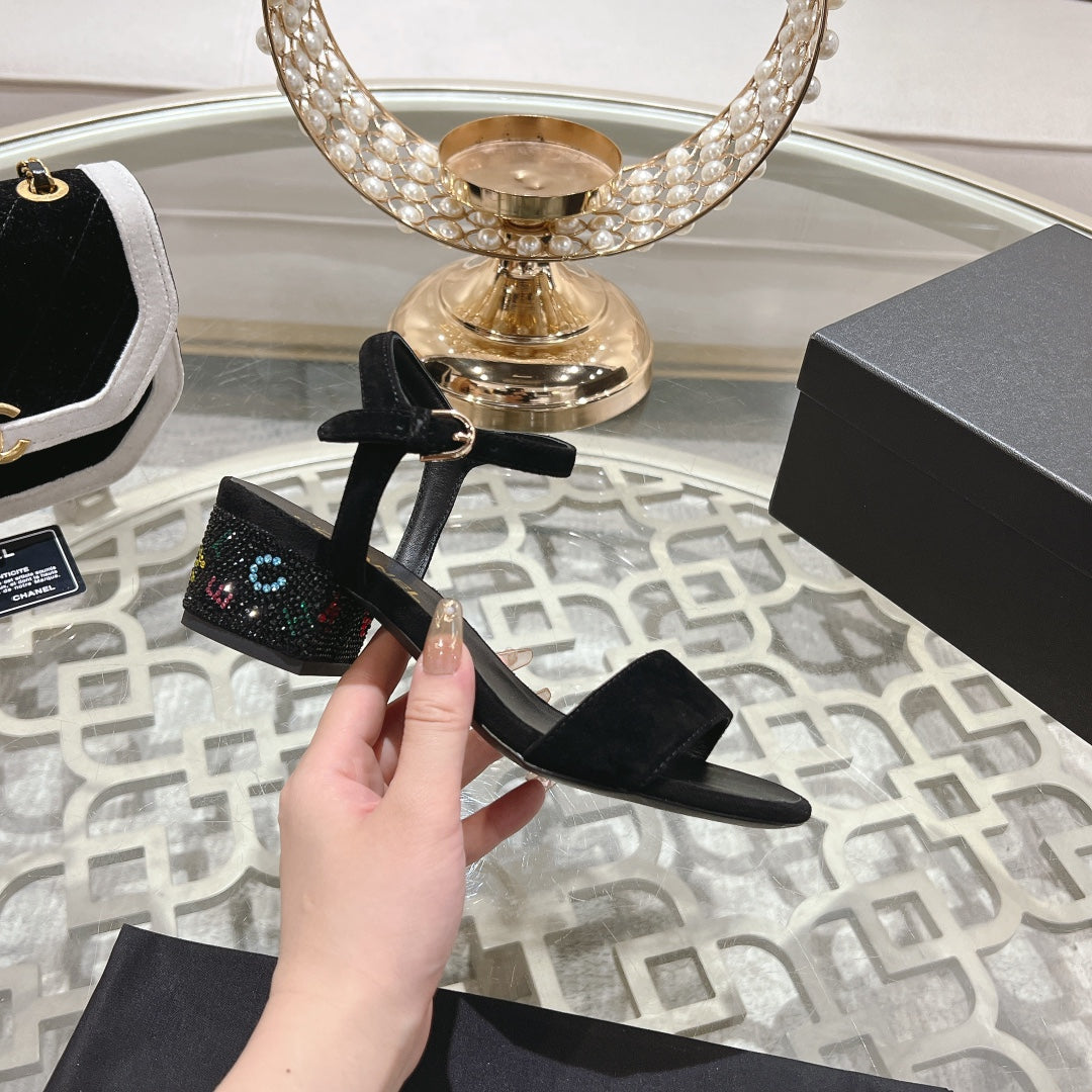 CC 25C 5CM Mid Heed Sandals Black Suede 213327
