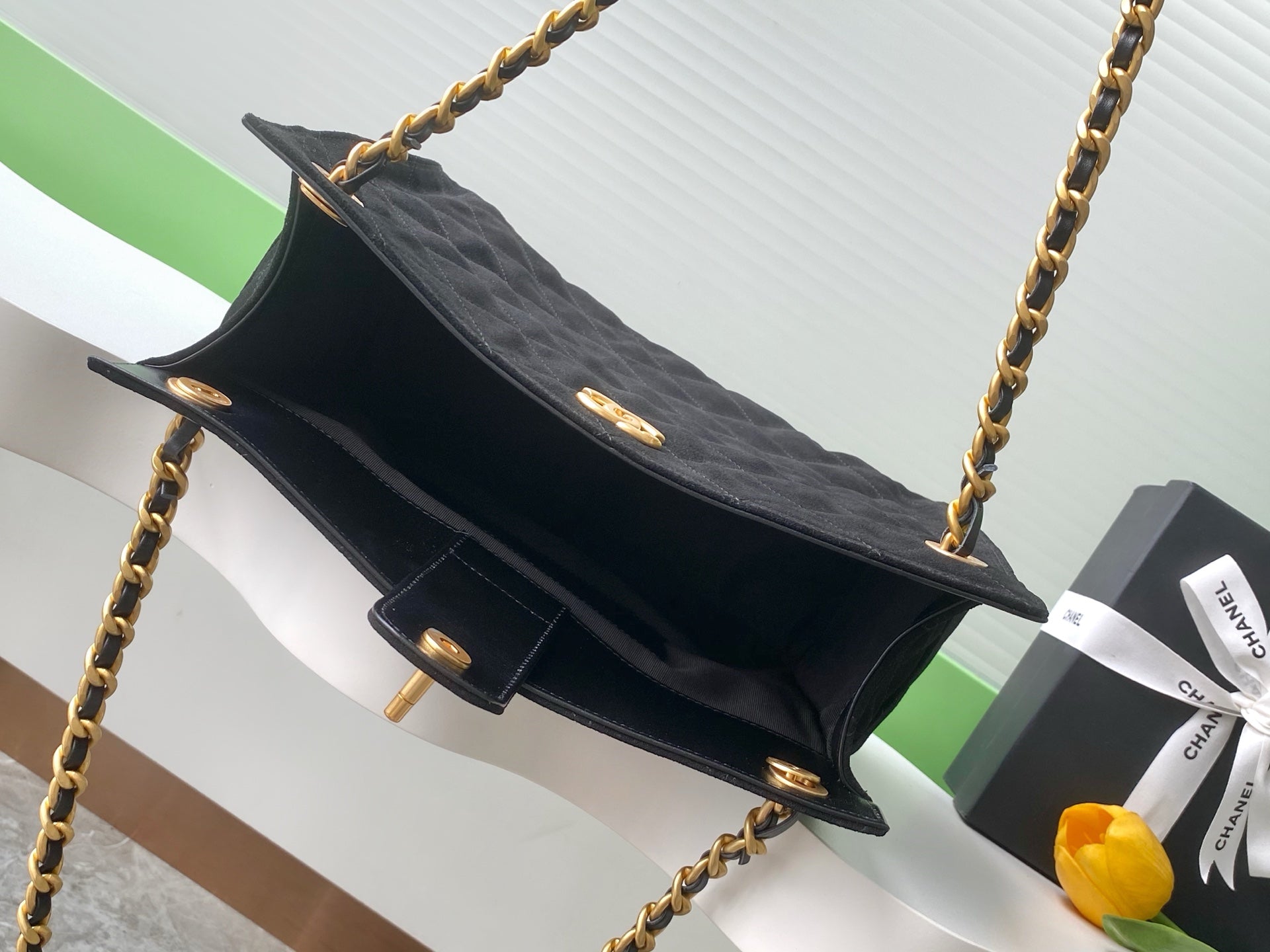 CC 25C Hobo Bag 31cm Black Matelasse Suede