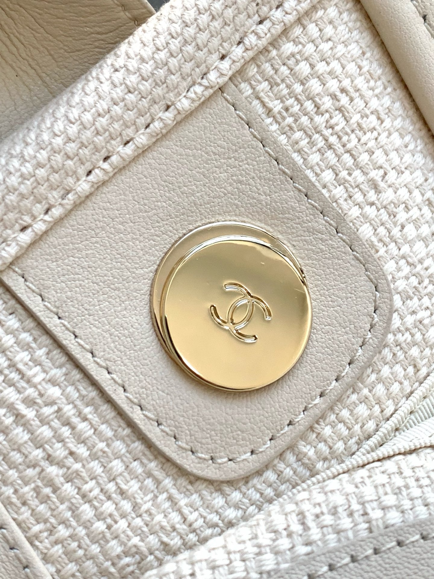 CC 25C ToTe Bag Beige Navy Blue Canvas Fabric 238518