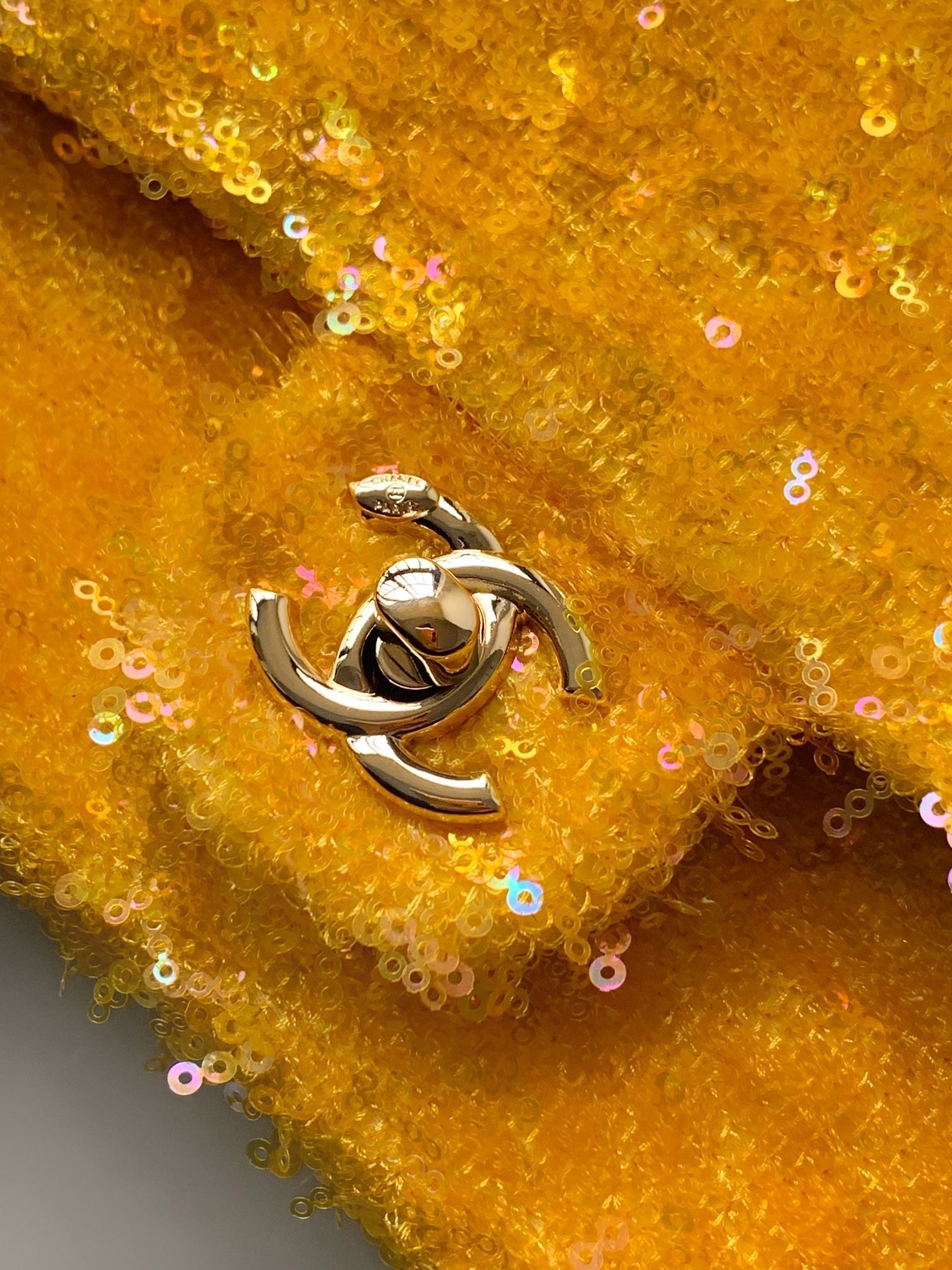 CC 25S Flap Bag 20cm Yellow Fringed Sequin Calfskin