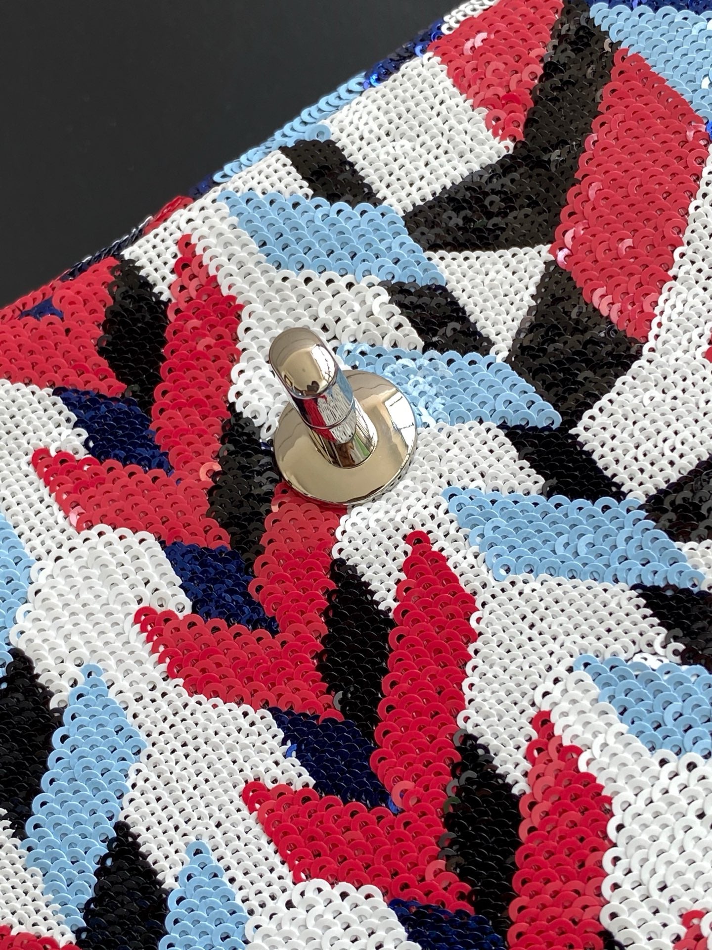 cc 25S Flap Bag 21cm Multicolor Chevron Sequin