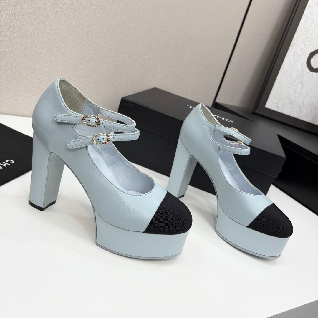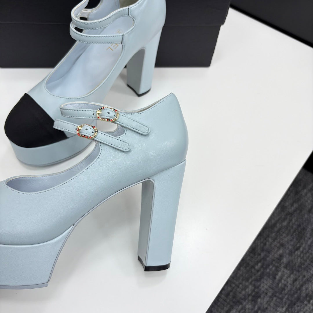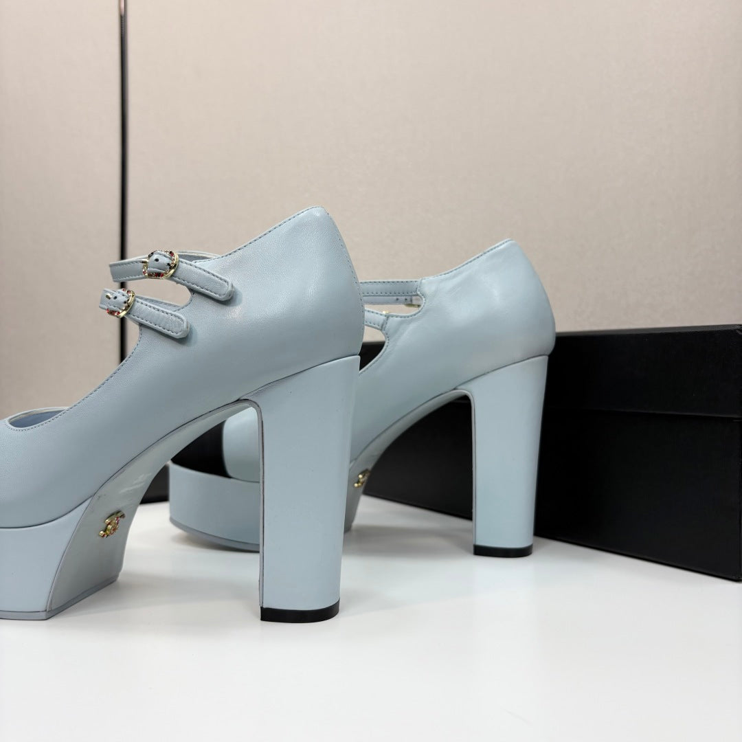 CC 25S Mary Jane Platform 11cm Cloud Blue Calfskin Grosgrain