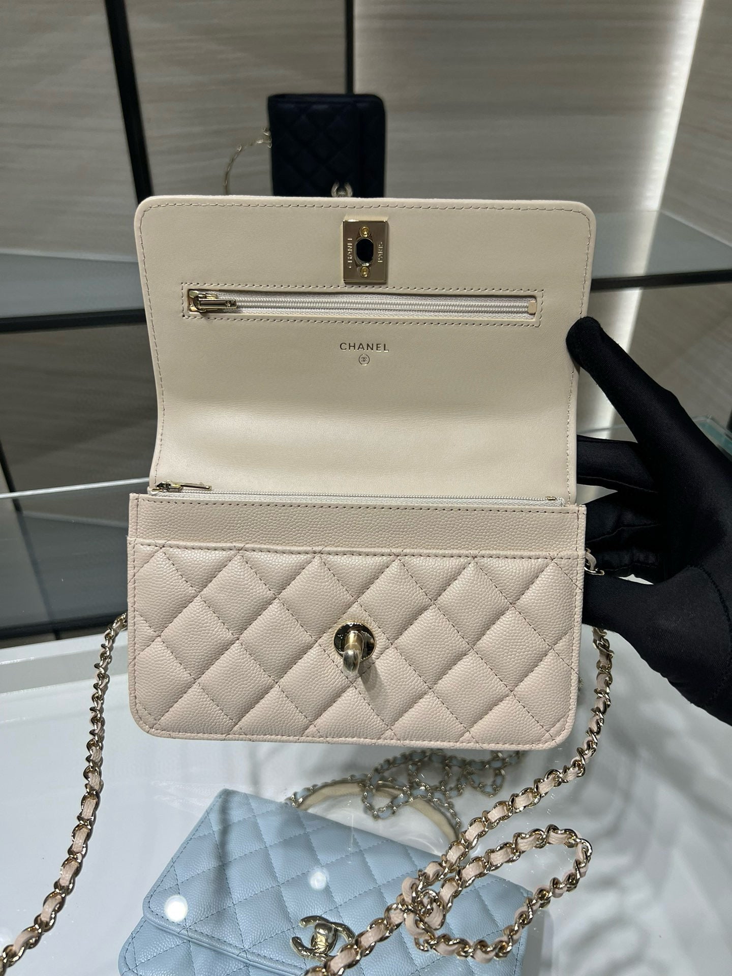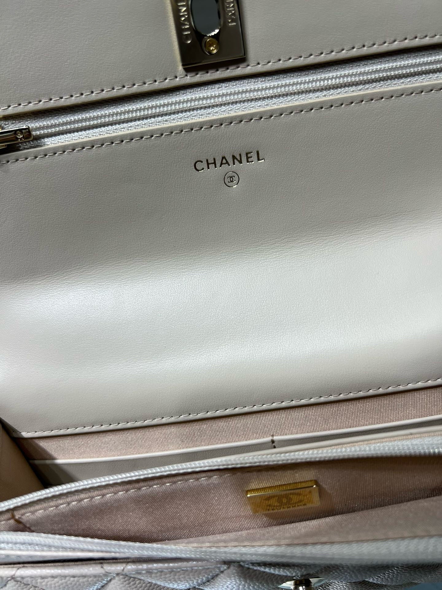 cc 25S Woc Top Handle 19cm Beige Grained Calfskin Light Gold Hardware