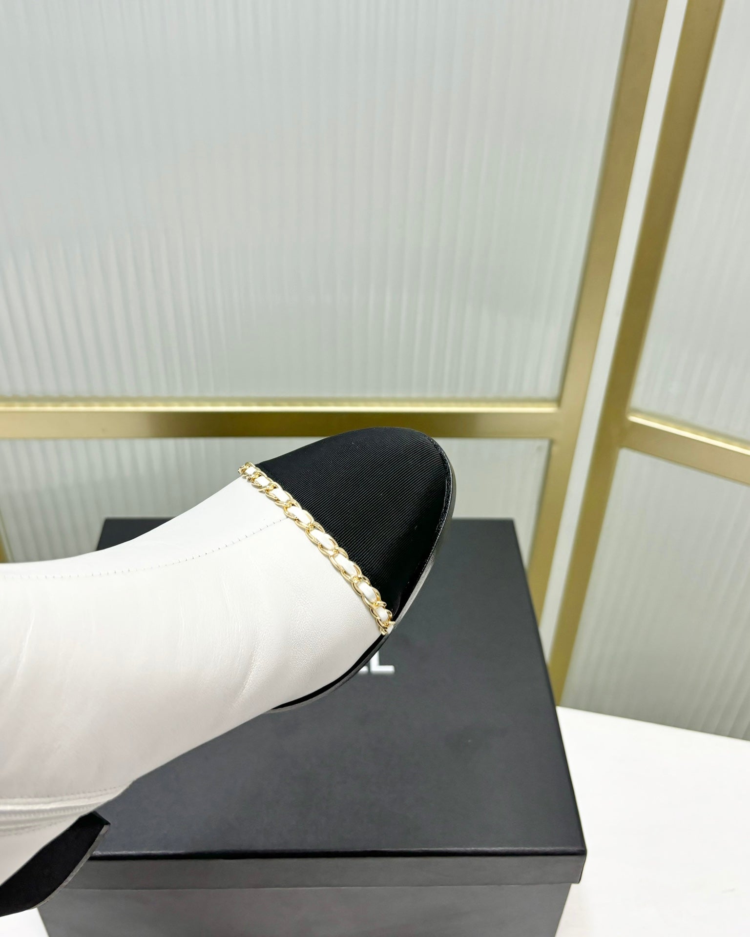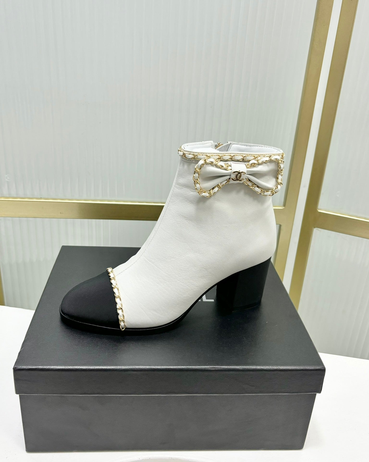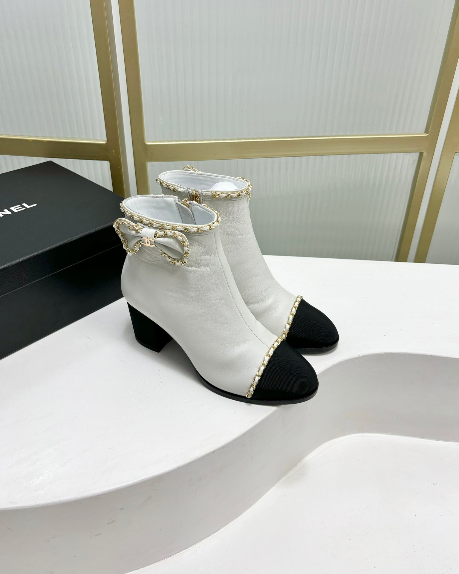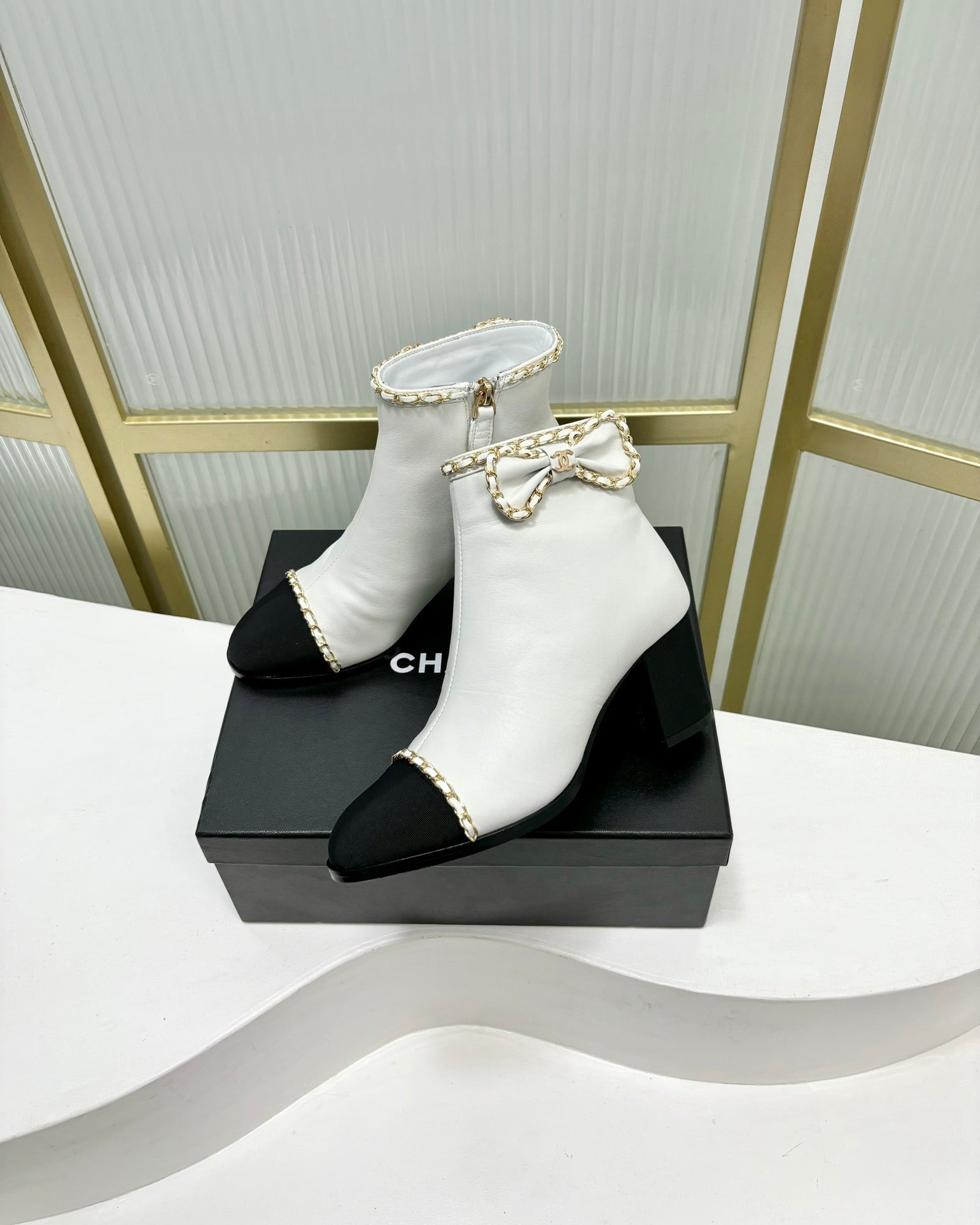 CC Ankle Boot 65 White Calfkin Black Grosgrain Leather Strap