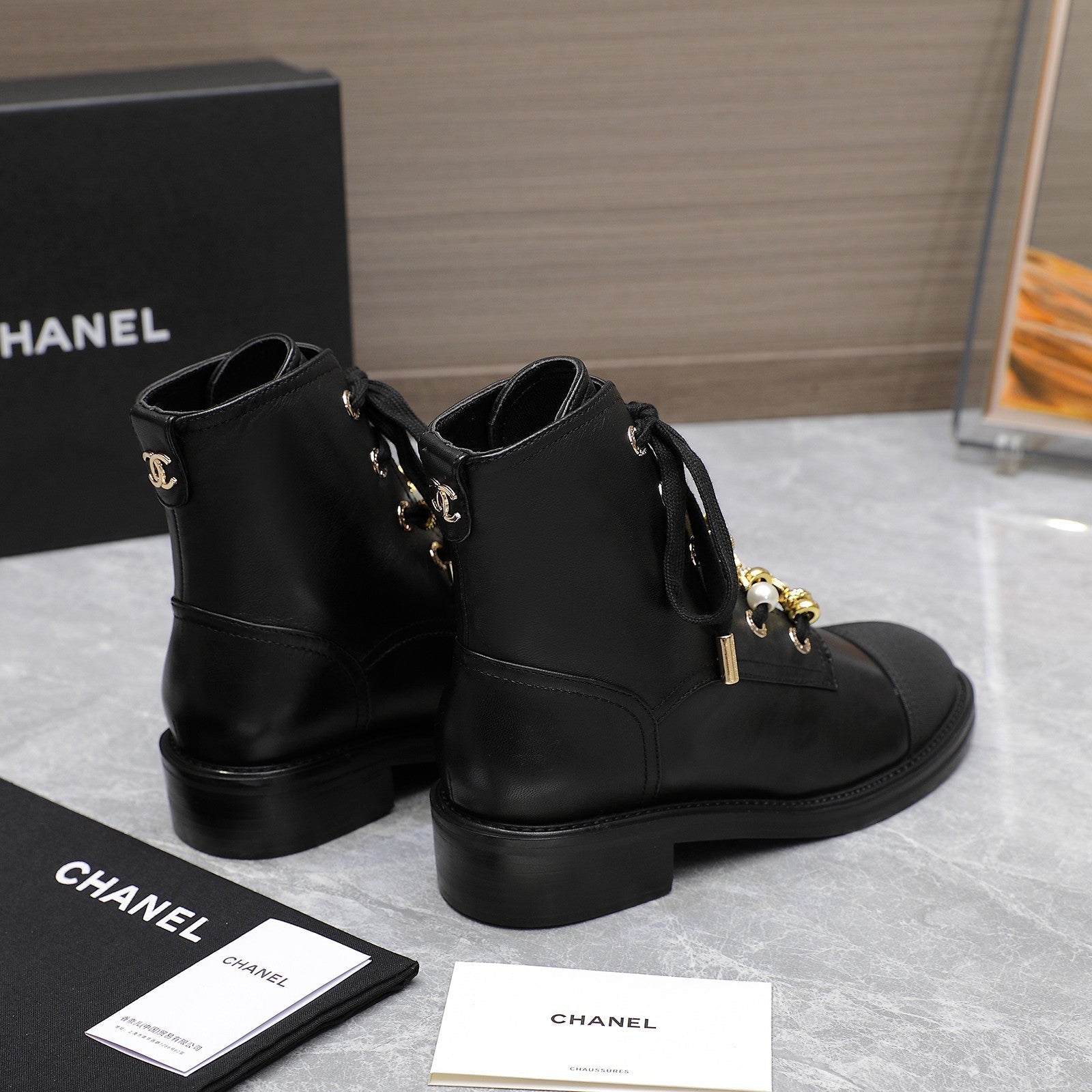 CC Ankle Boots 30mm Black Plain Cowhide