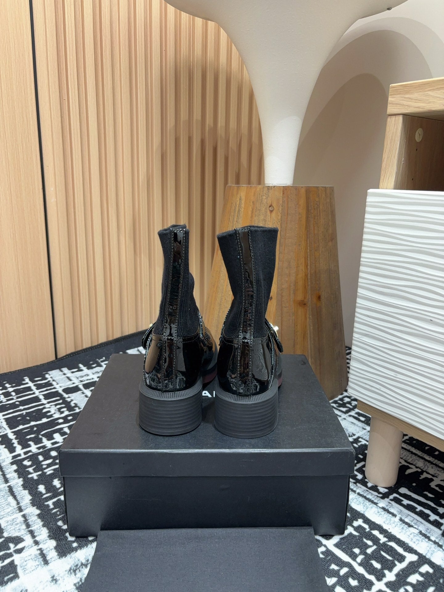 CC Ankle Boots 50mm Black Wool And Cowhide