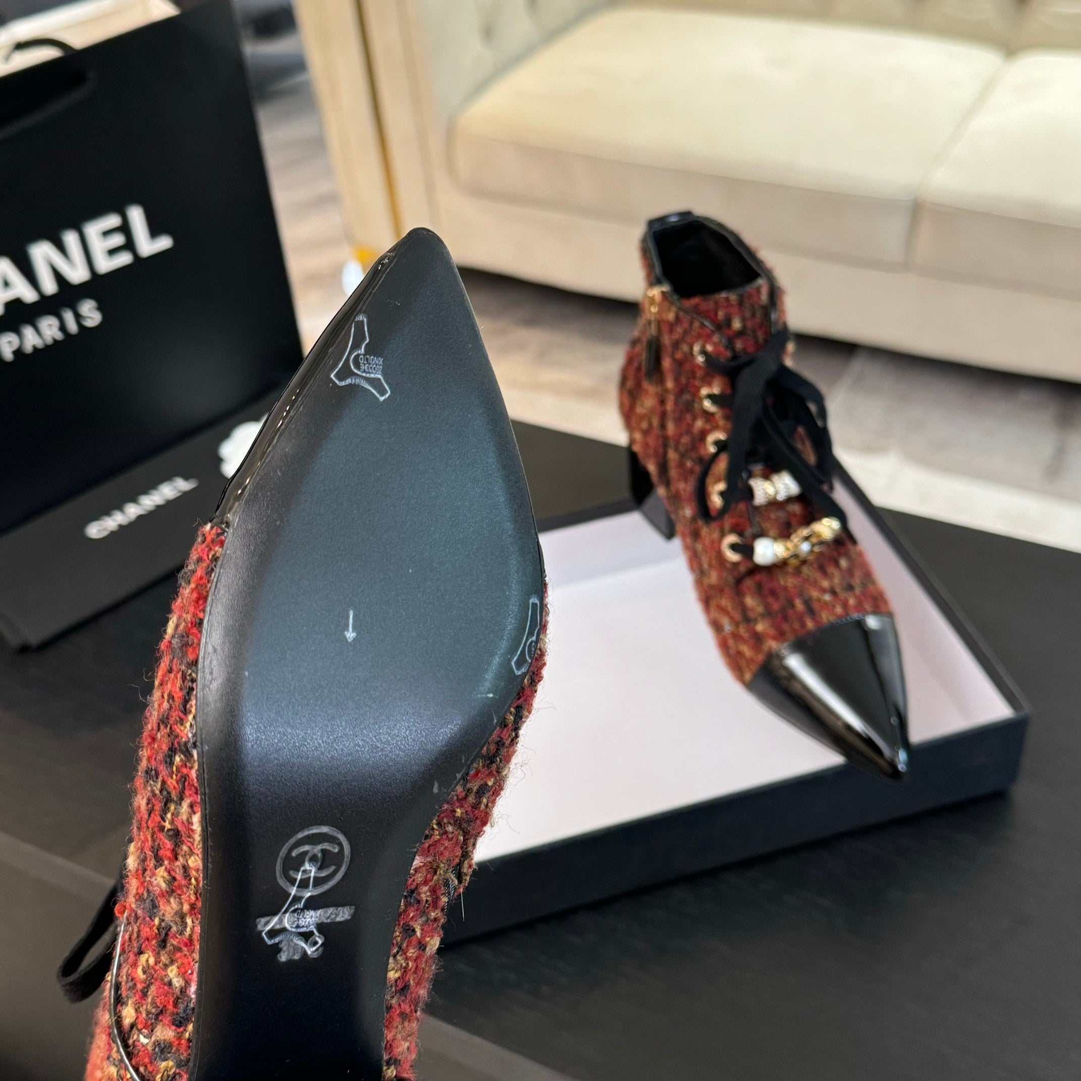 CC Ankle Boots Orange Red Beaded Tweed Fabric And Lambskin
