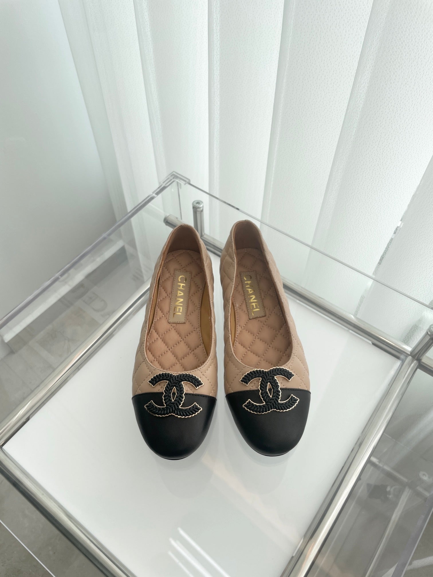CC Ballet Flats 10mm Beige Black Quilted Lambskin
