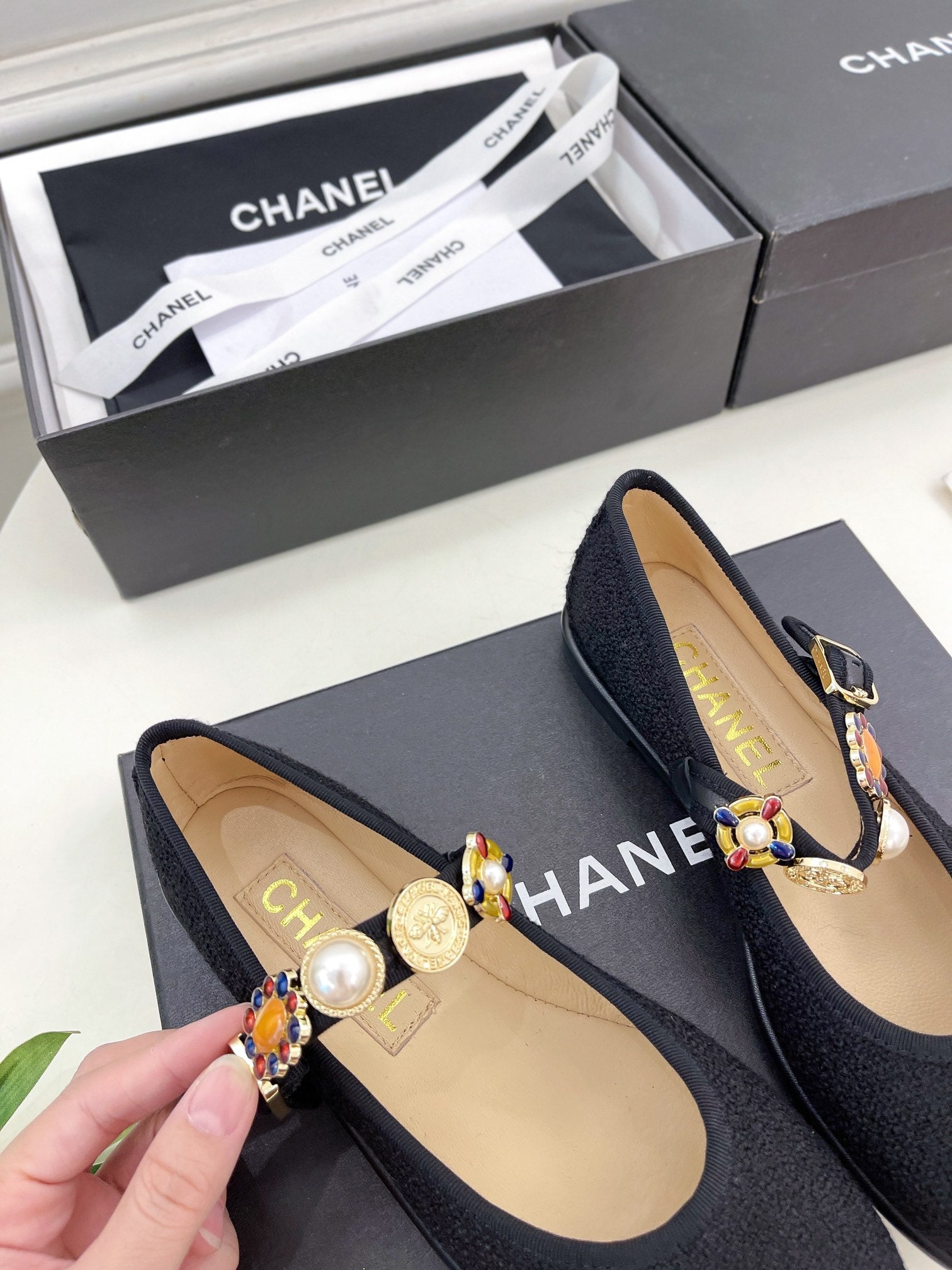 CC Ballet Flats 10mm Black Wool Tweed And Fabric 948826