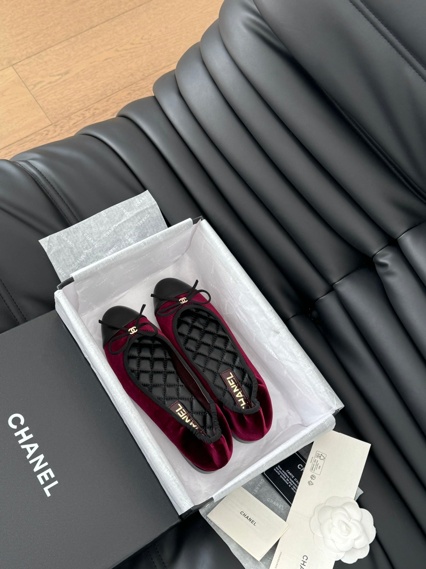 CC Ballet Flats In Burgundy Velvet Fabric 143536
