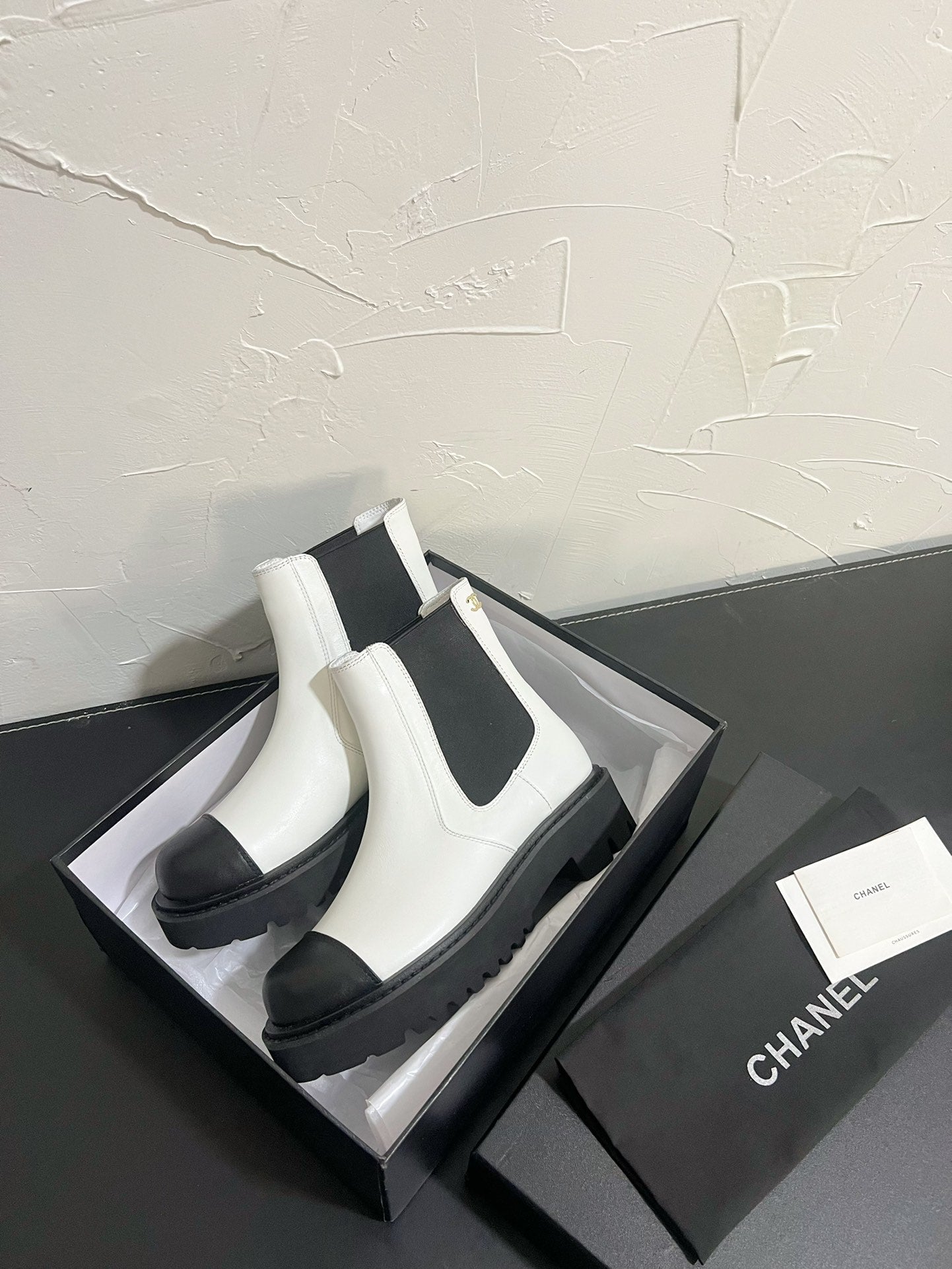 CC Chelsea Ankle Boots In White Mix Black Cowhide 949683
