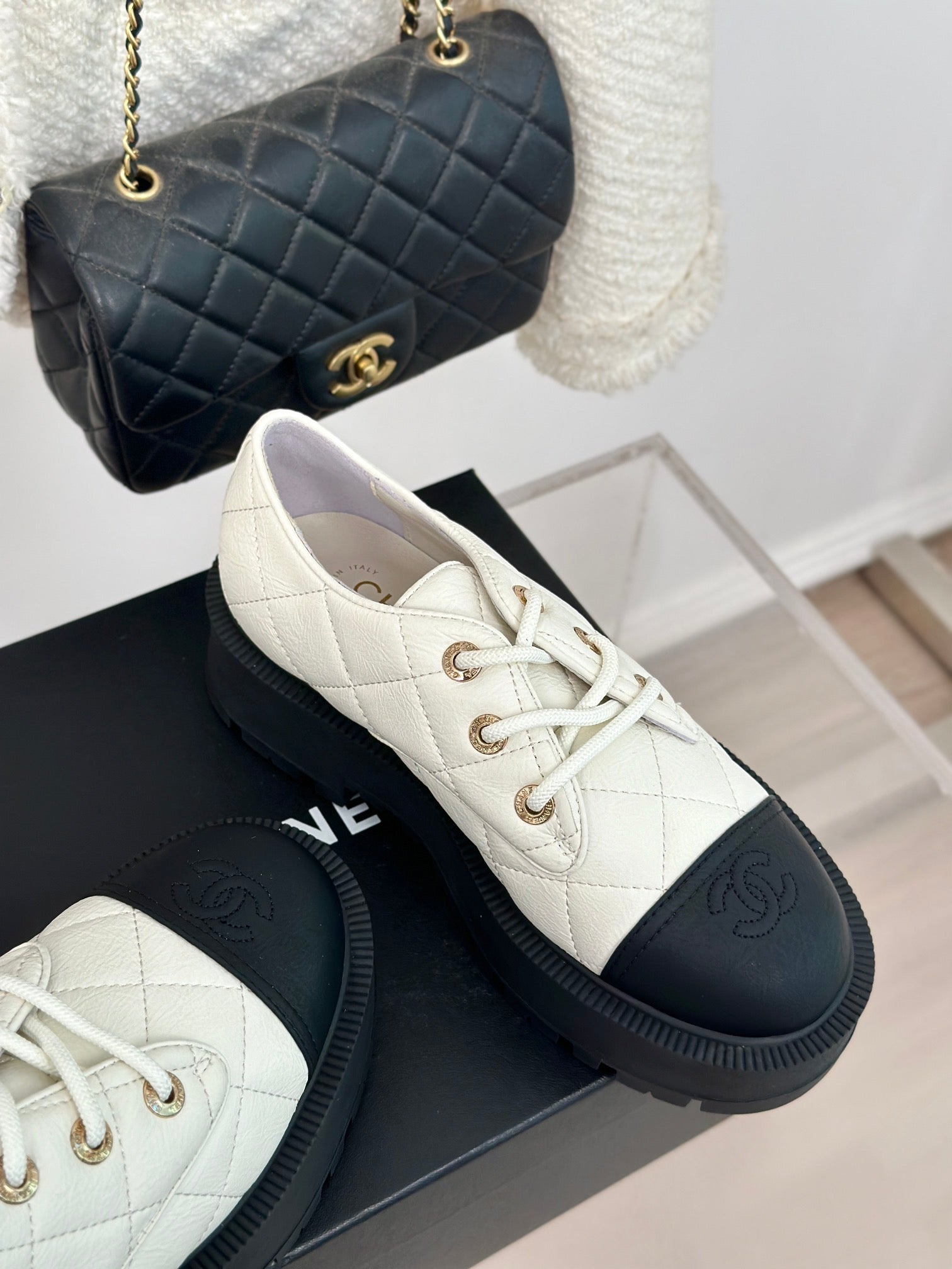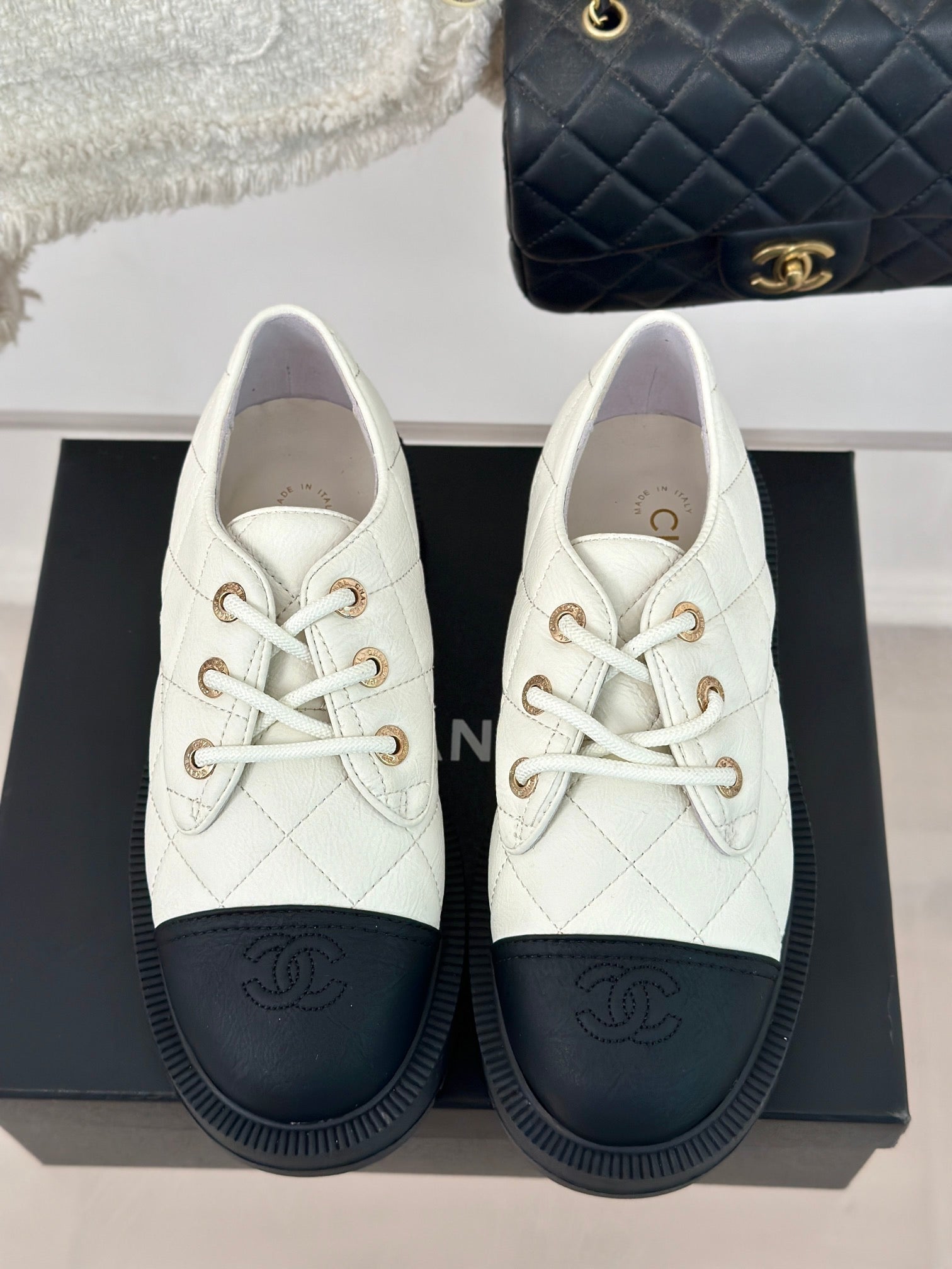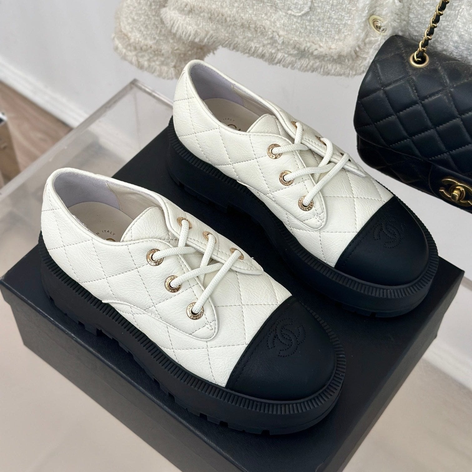 CC Classic Sneaker 50mm White Quilted Wrinkled Calfskin