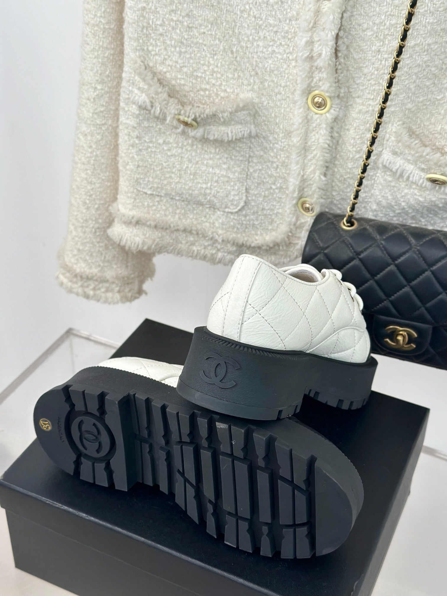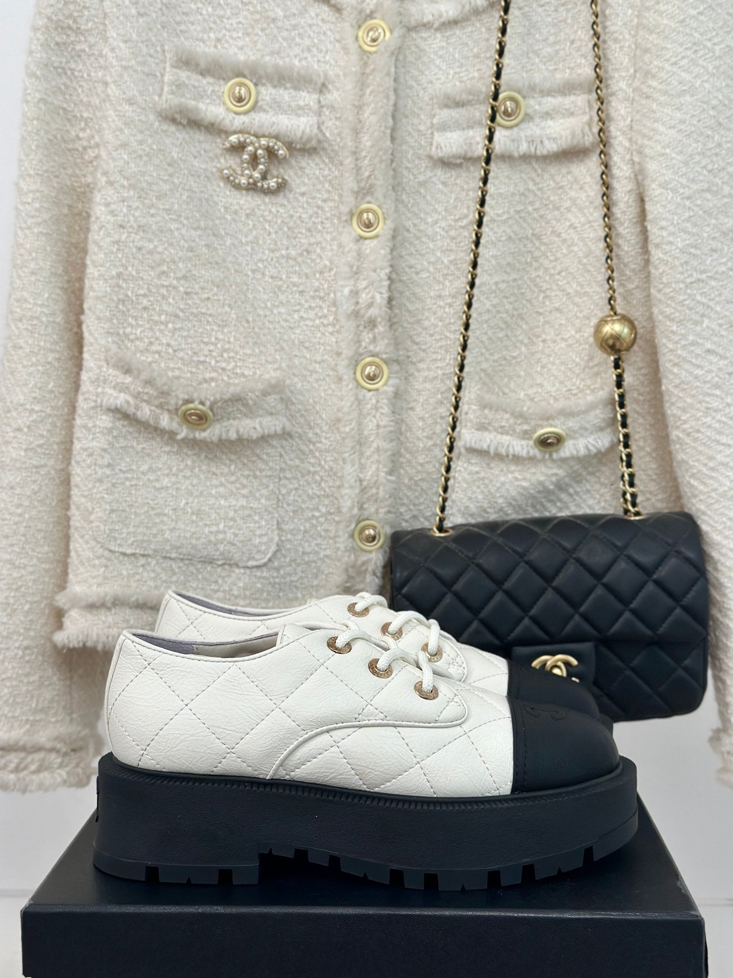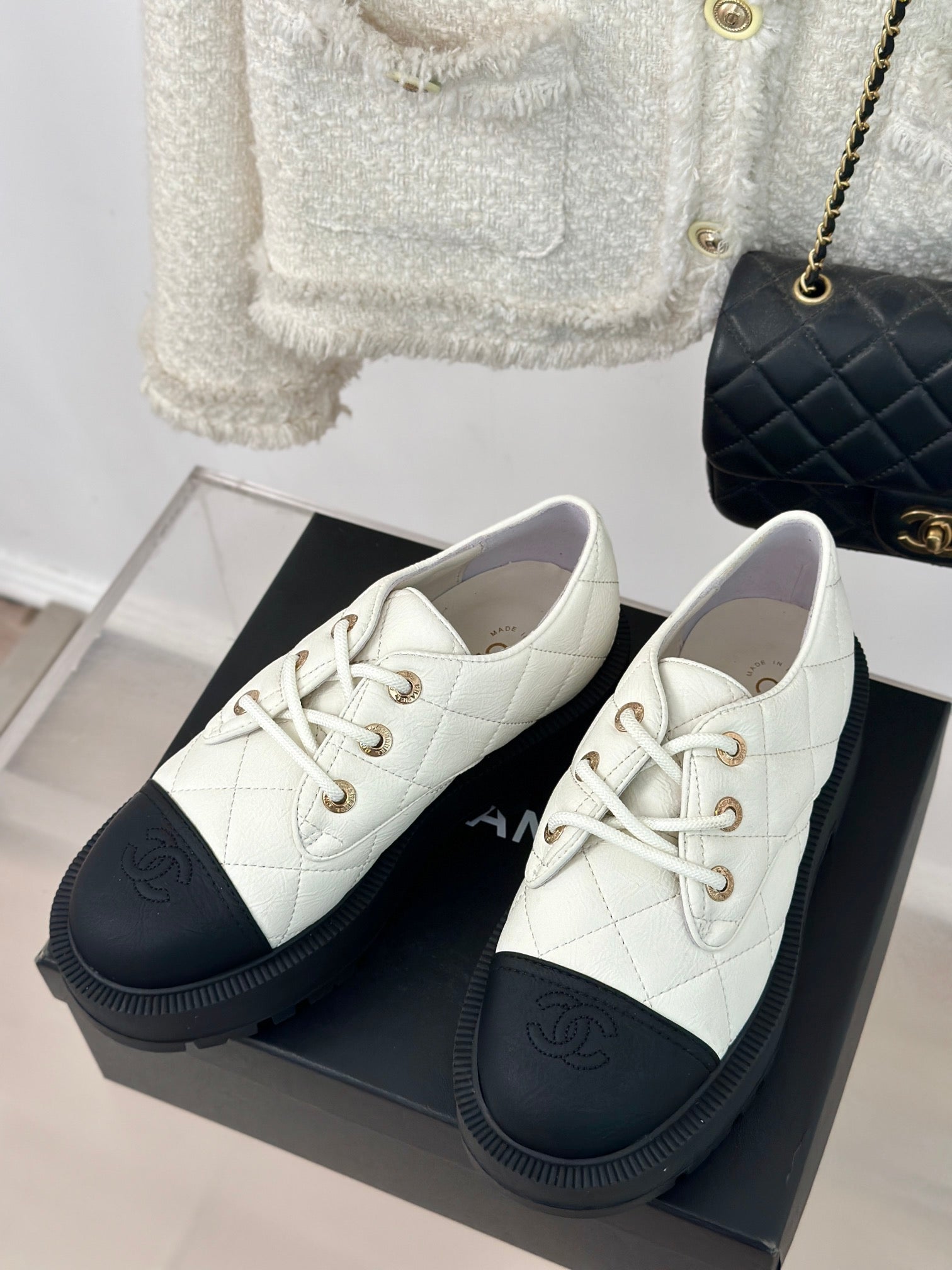 CC Classic Sneaker 50mm White Quilted Wrinkled Calfskin