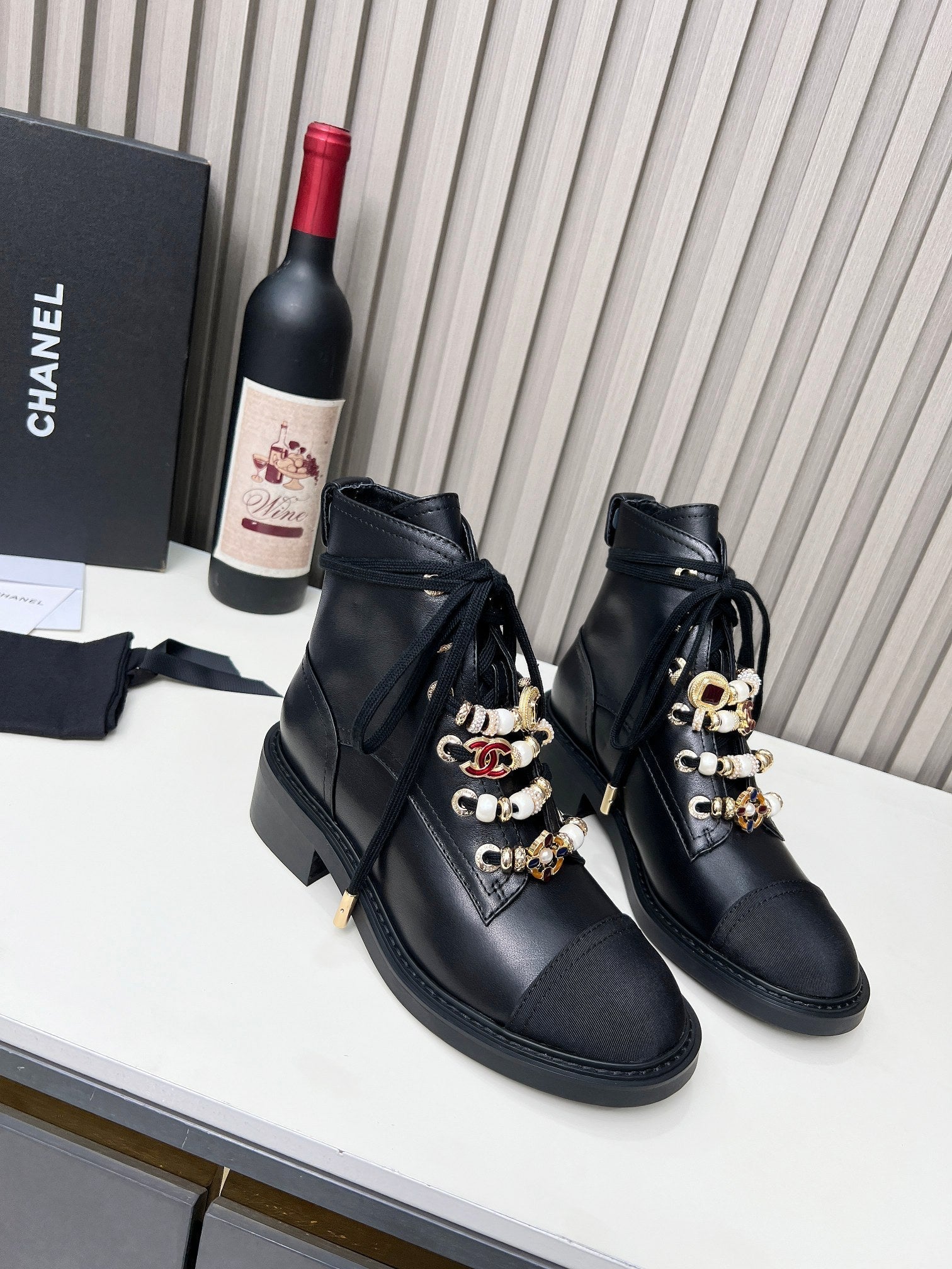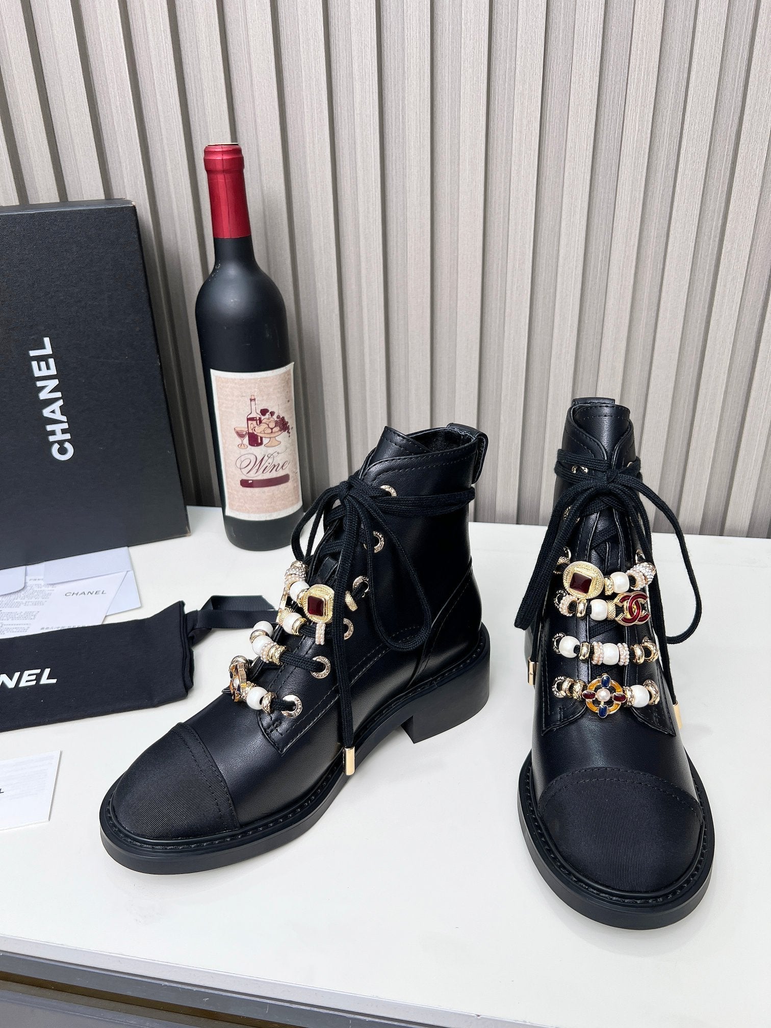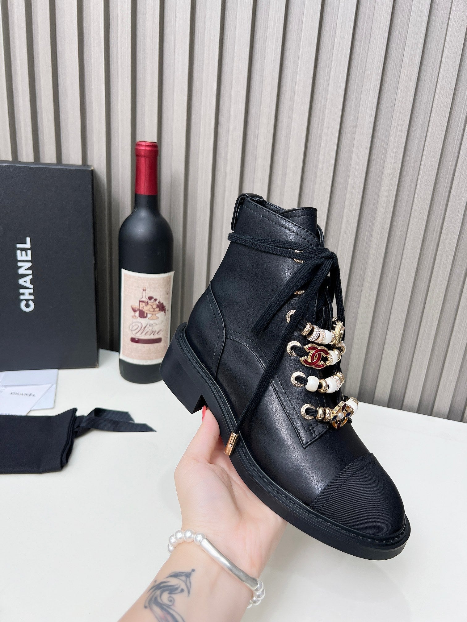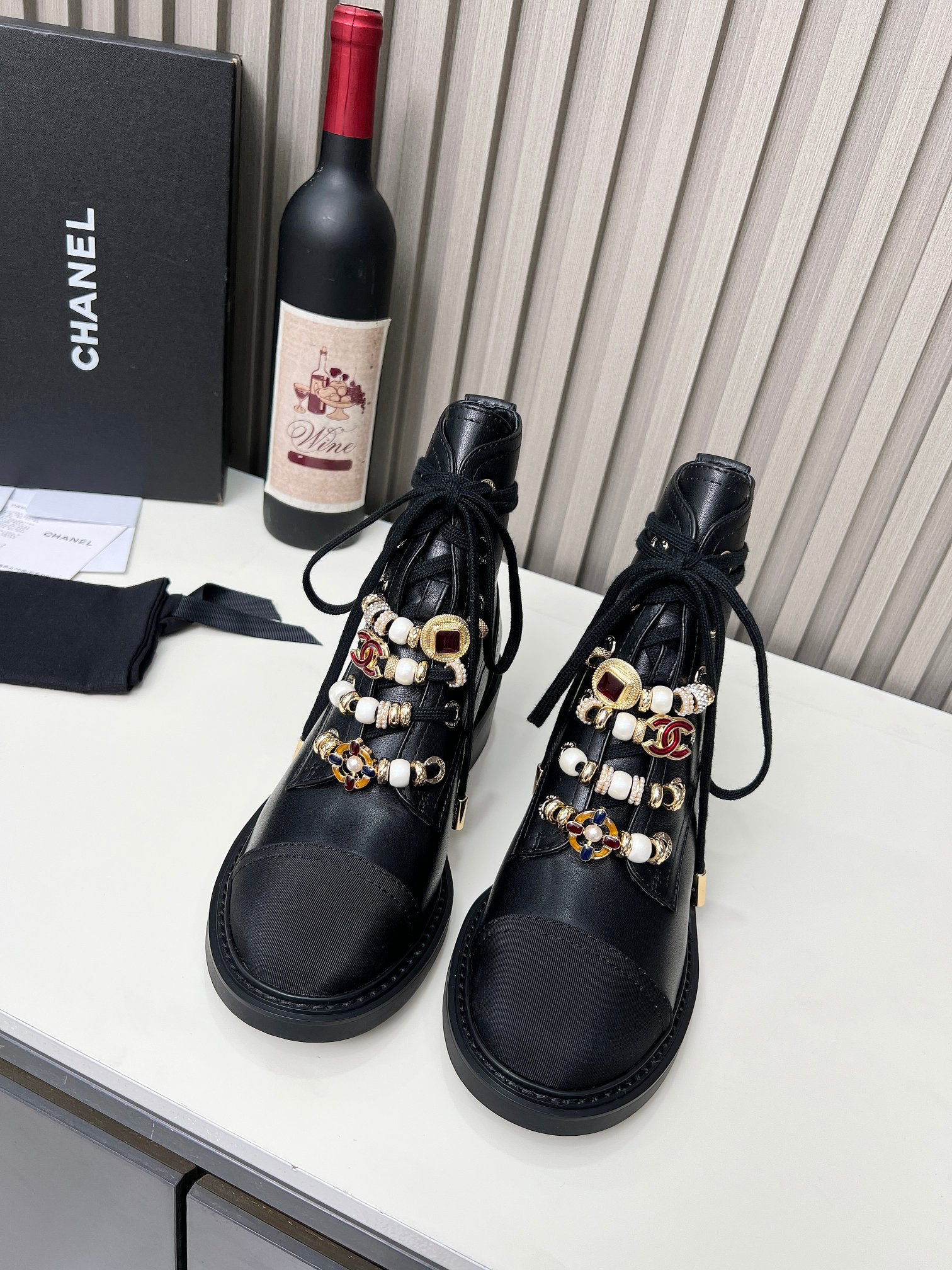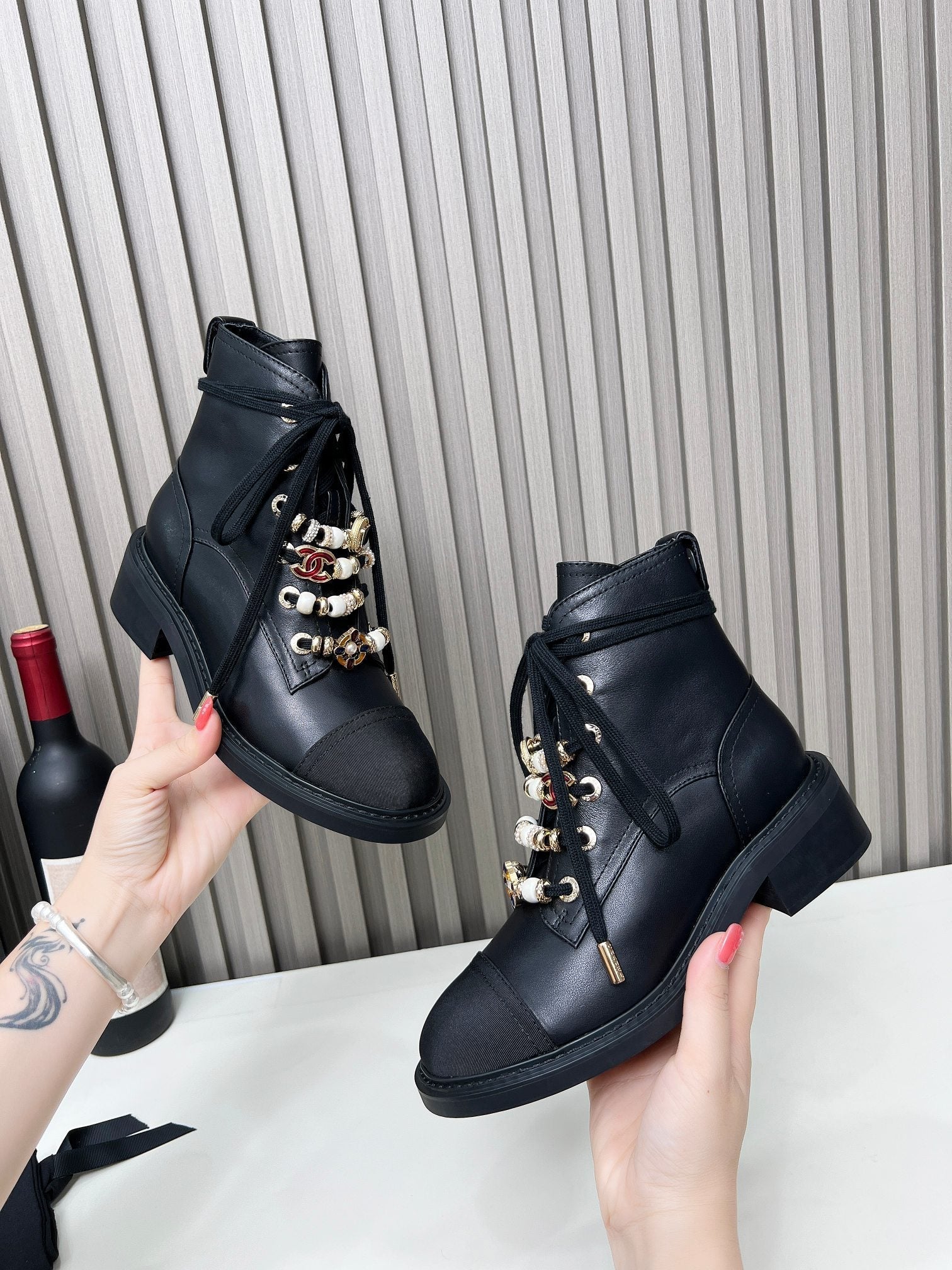 CC Combat Boots 50mm Black Calfskin And Lycra Fabric 944548