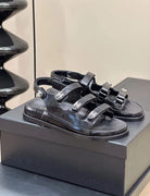 CC DAD SANDALS THREE STRAP BLACK LAMBSKIN