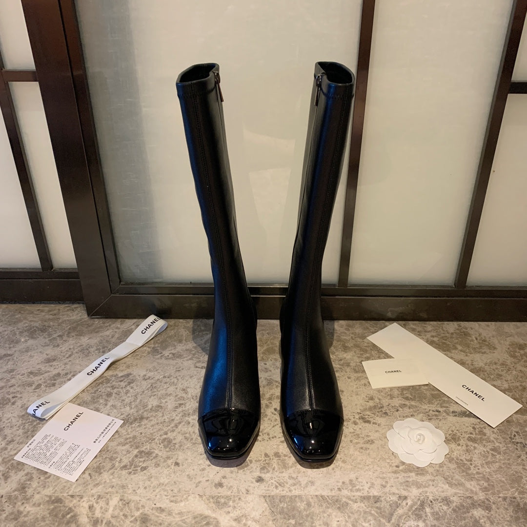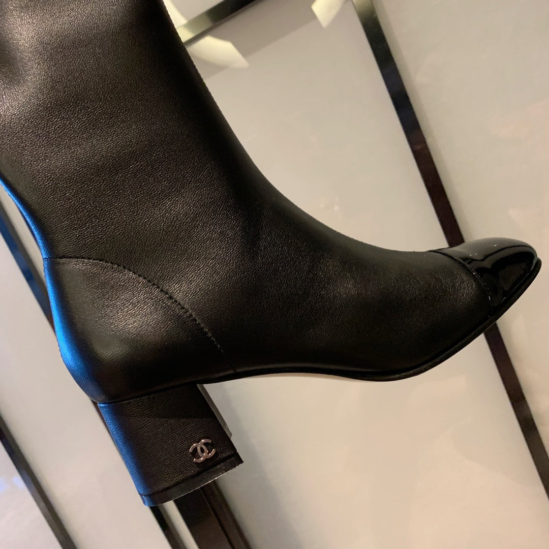 CC High Boots 50mm In Black Lambskin And Glossy Cowhide 940065