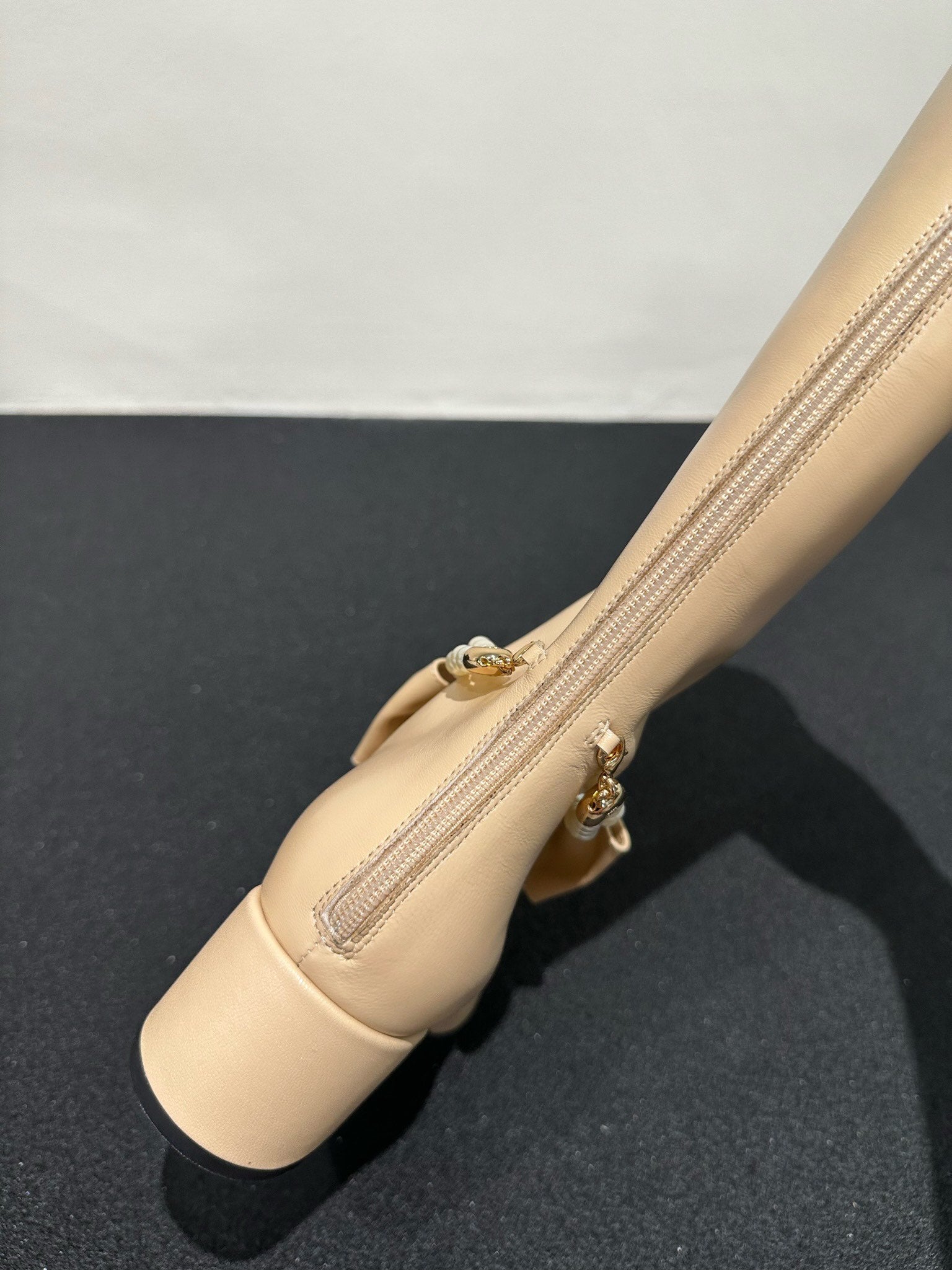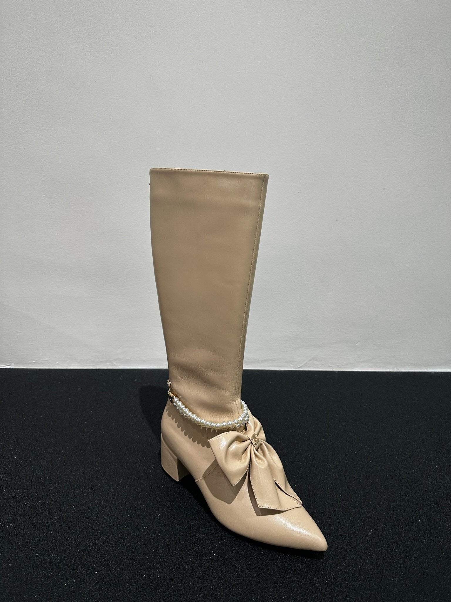 CC High Boots Beige Bow Tie Cowhide