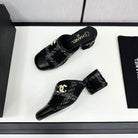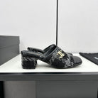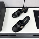 CC HIGH MULE IN BLACK WOOL TWEED AND CALFSKIN GOLD HARDWARE