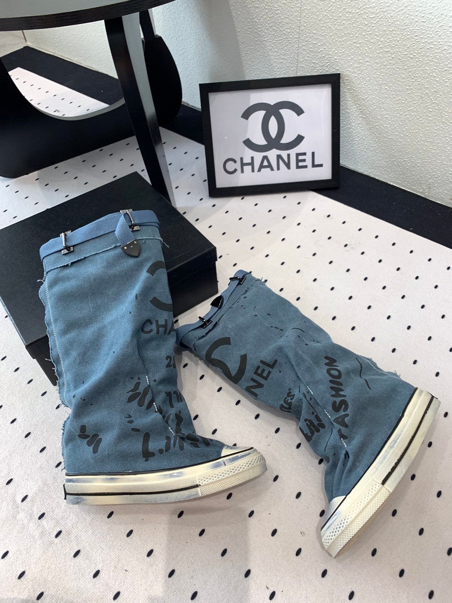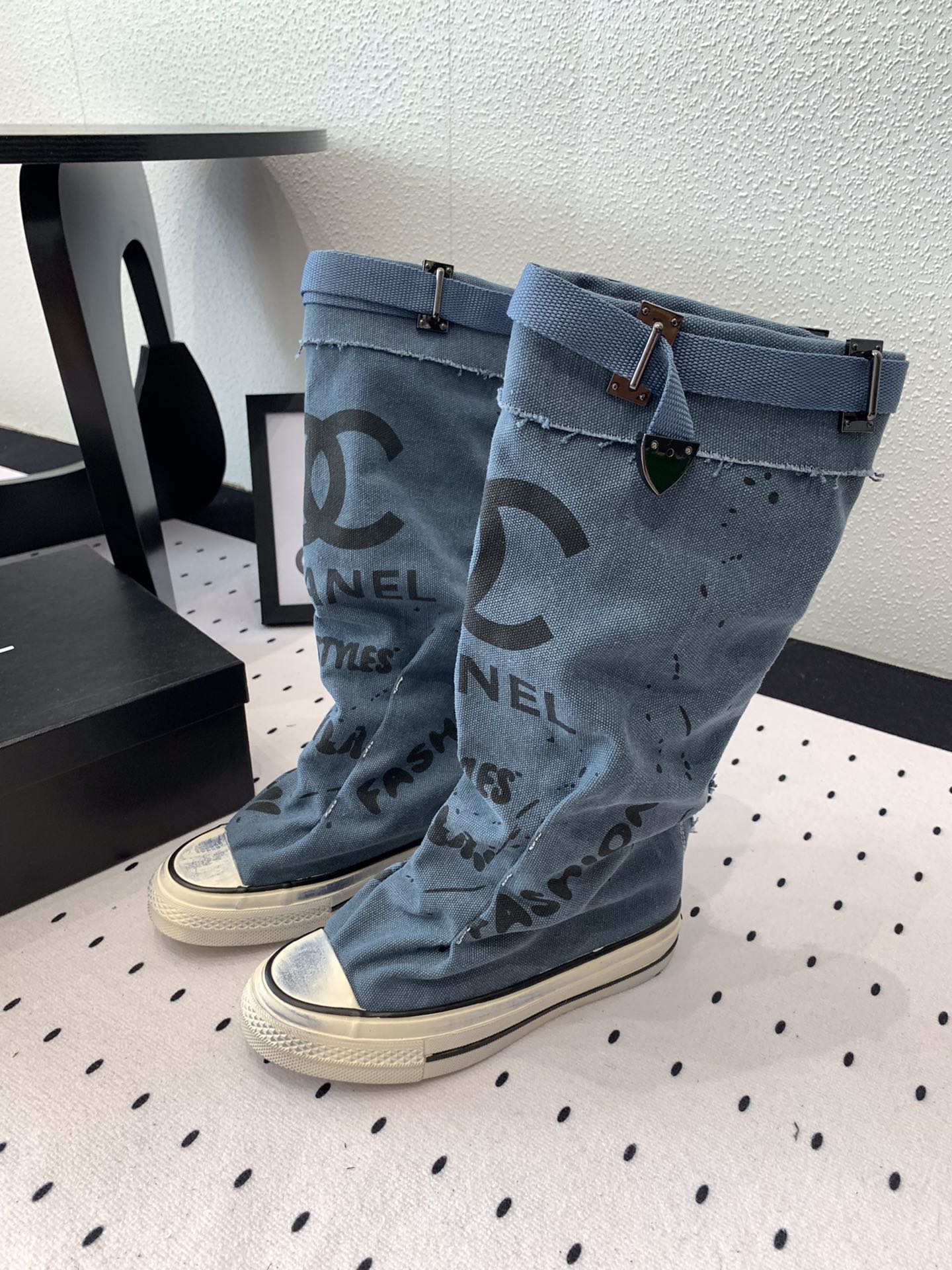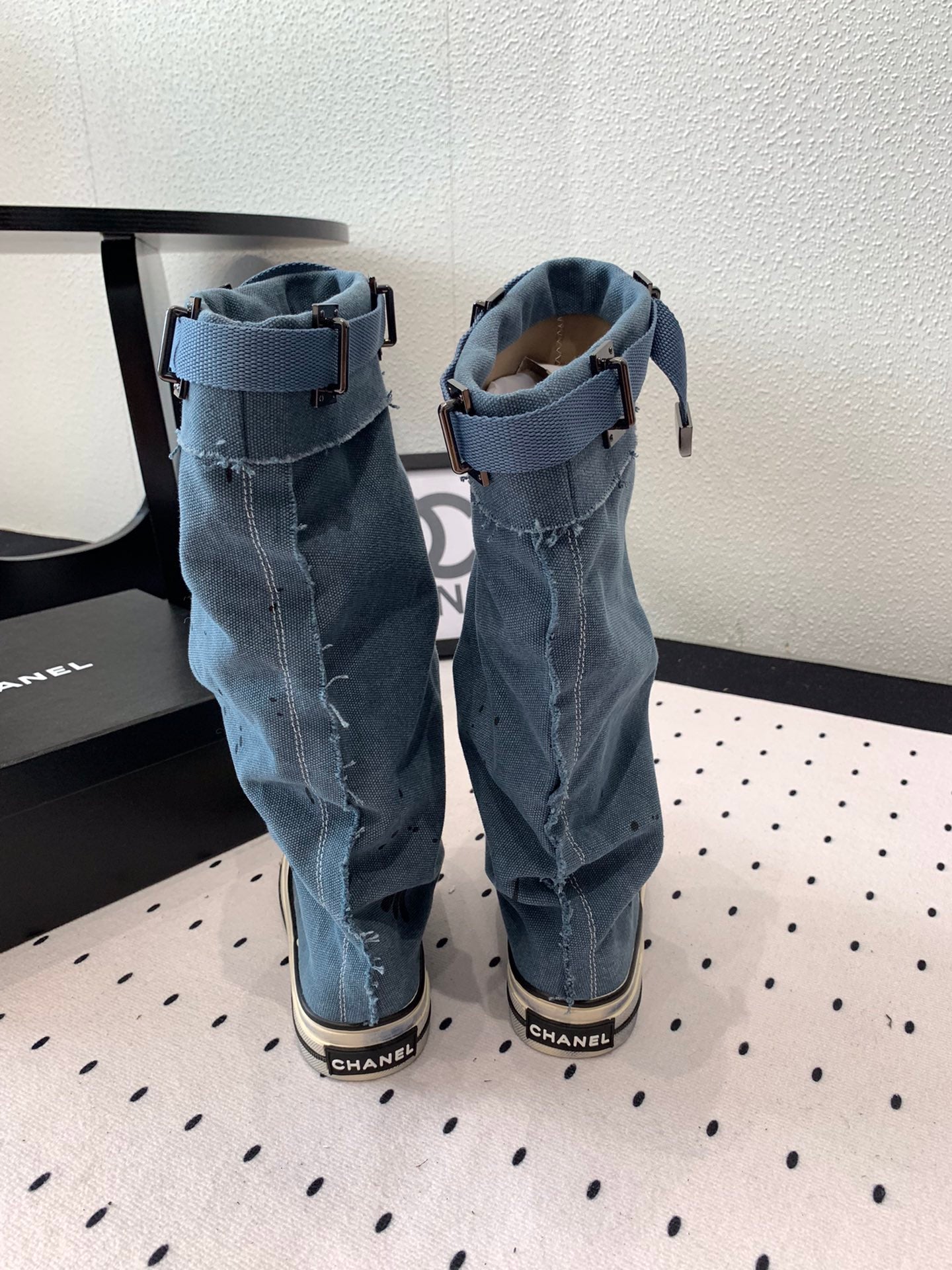 CC High-Top Canvas Boots Blue Black Denim Fabric 938049