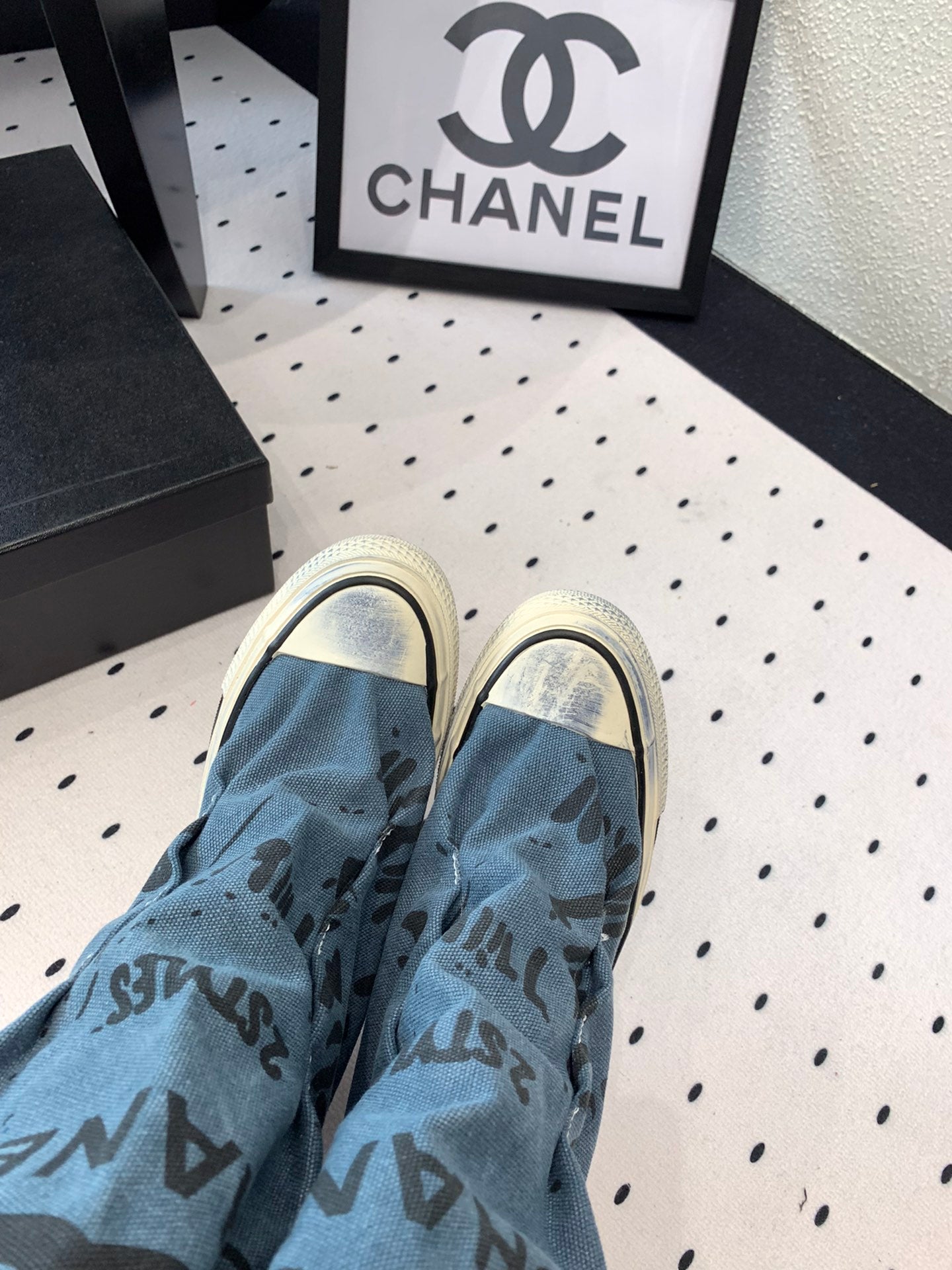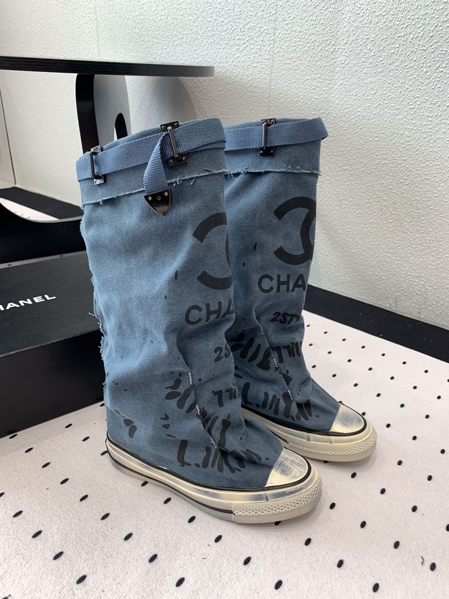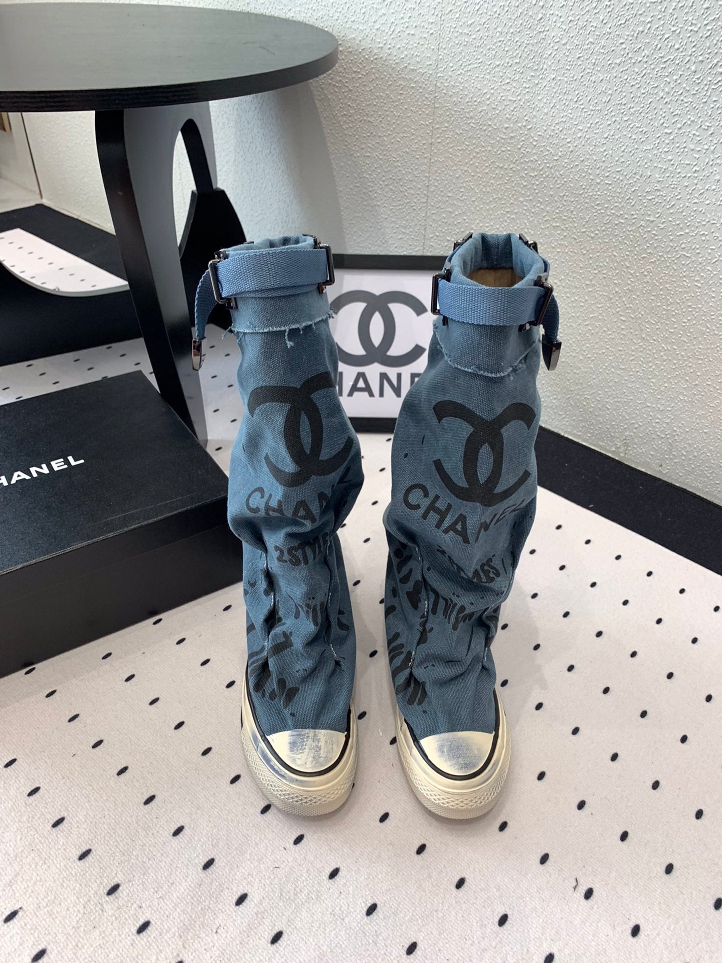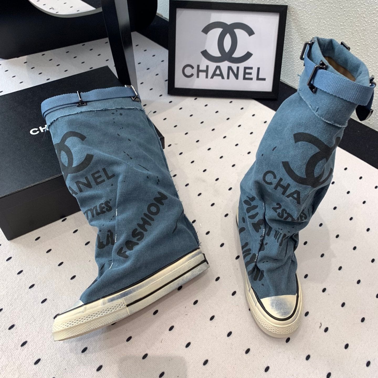 CC High-Top Canvas Boots Blue Black Denim Fabric 938049