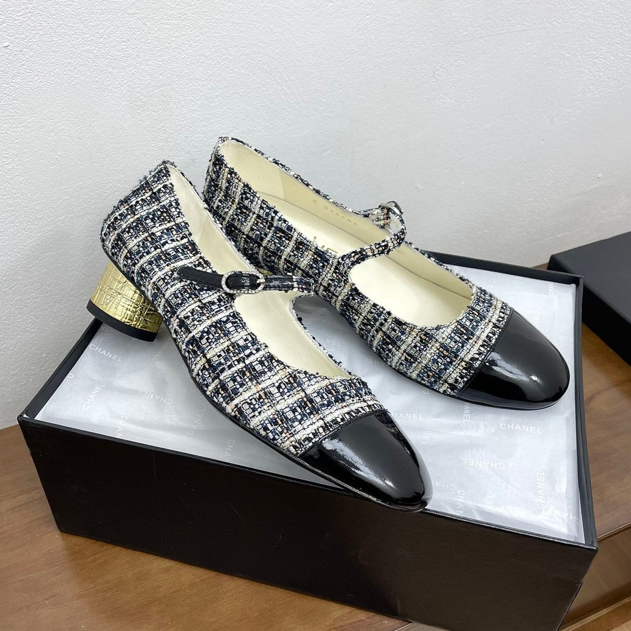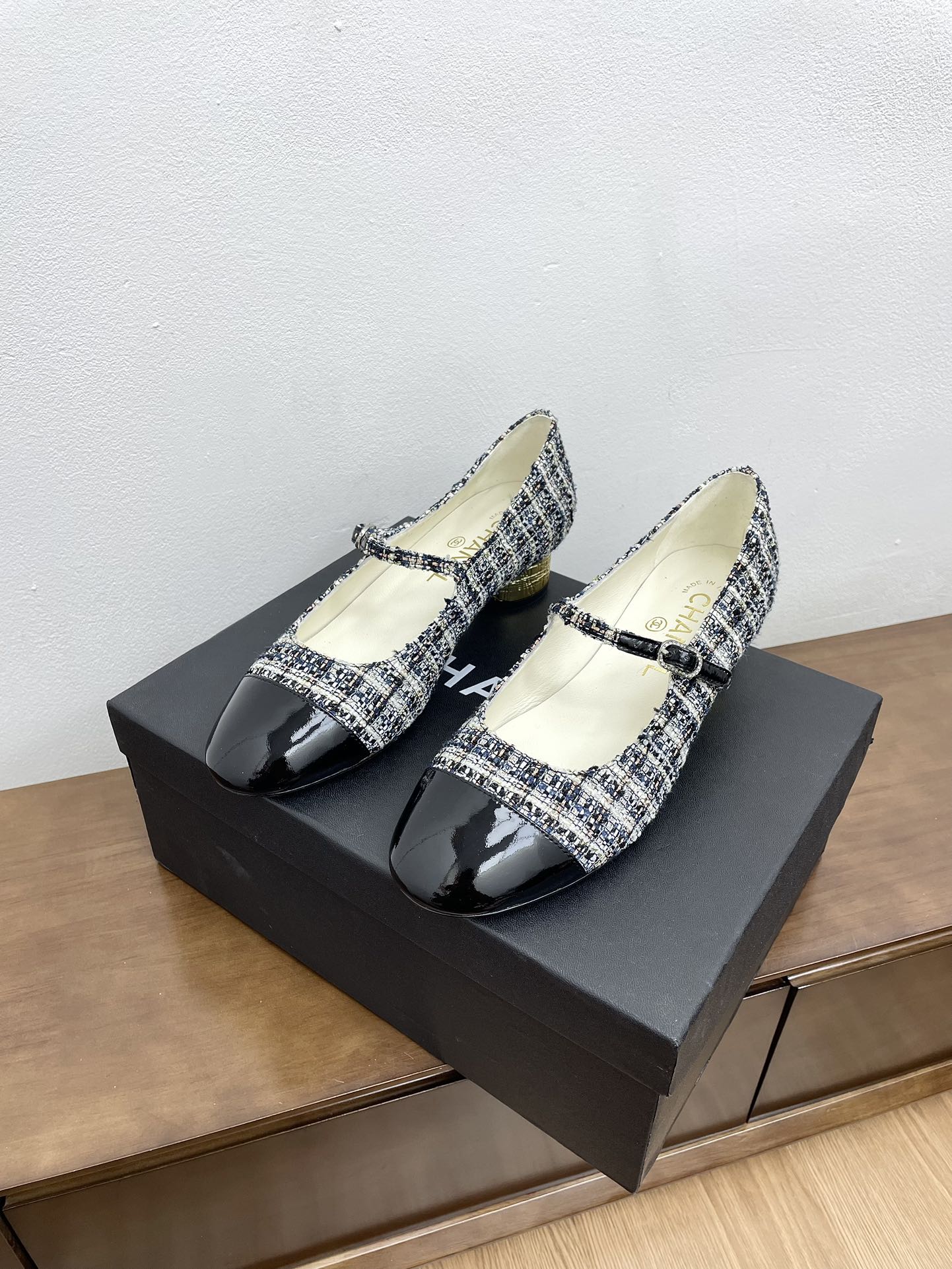 CC Mary Jane Black Tweed Farbic And Cowhide