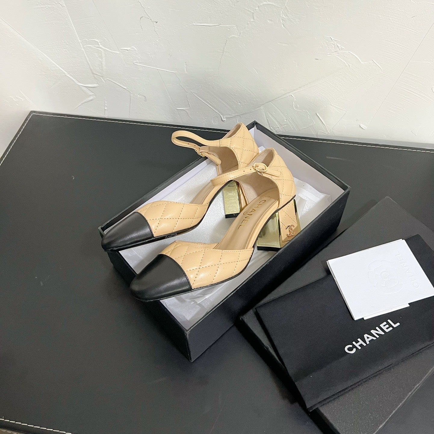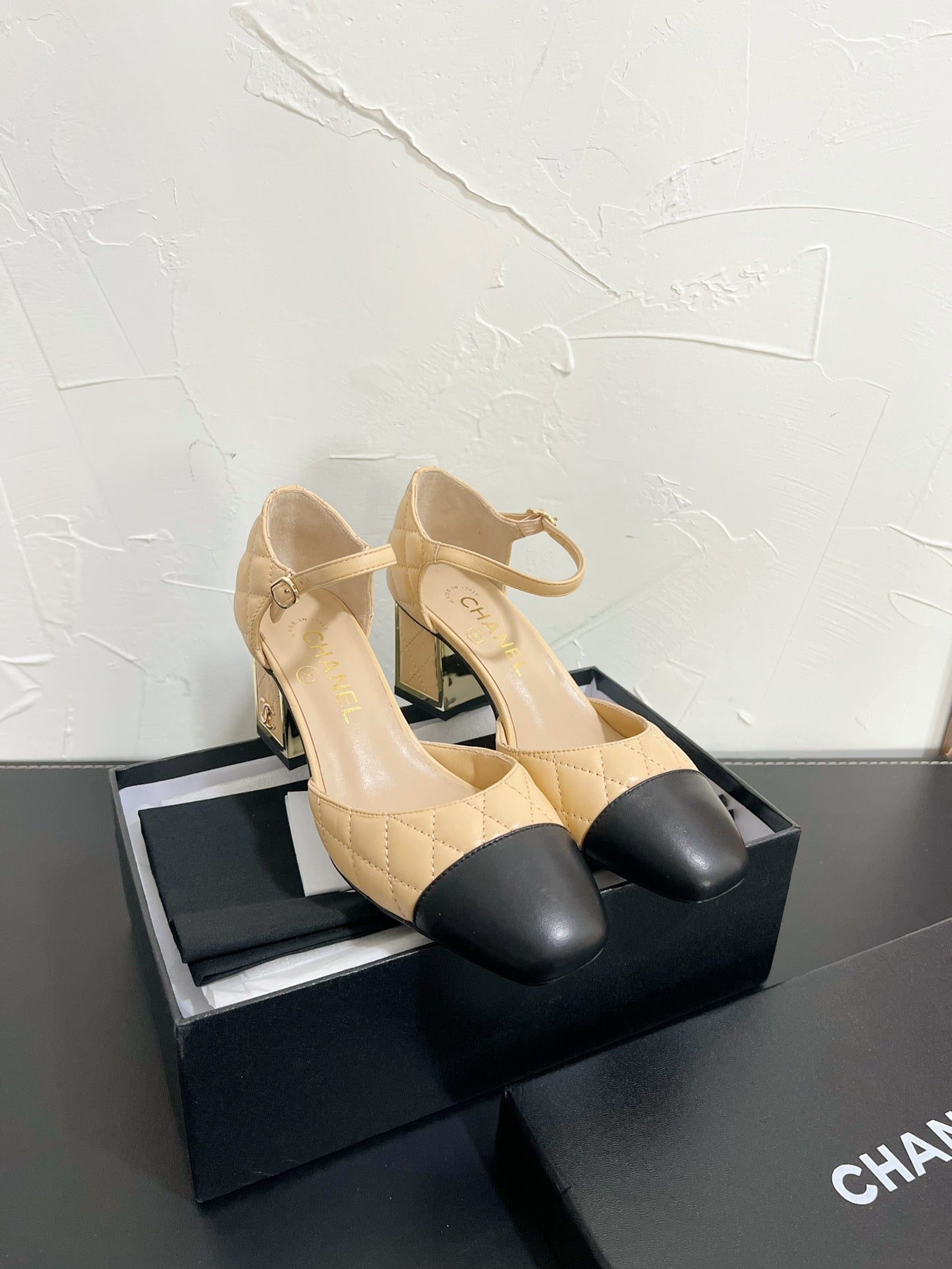 CC Mary Janes 55mm In Beige Mix Black Quilted Lambskin 949764