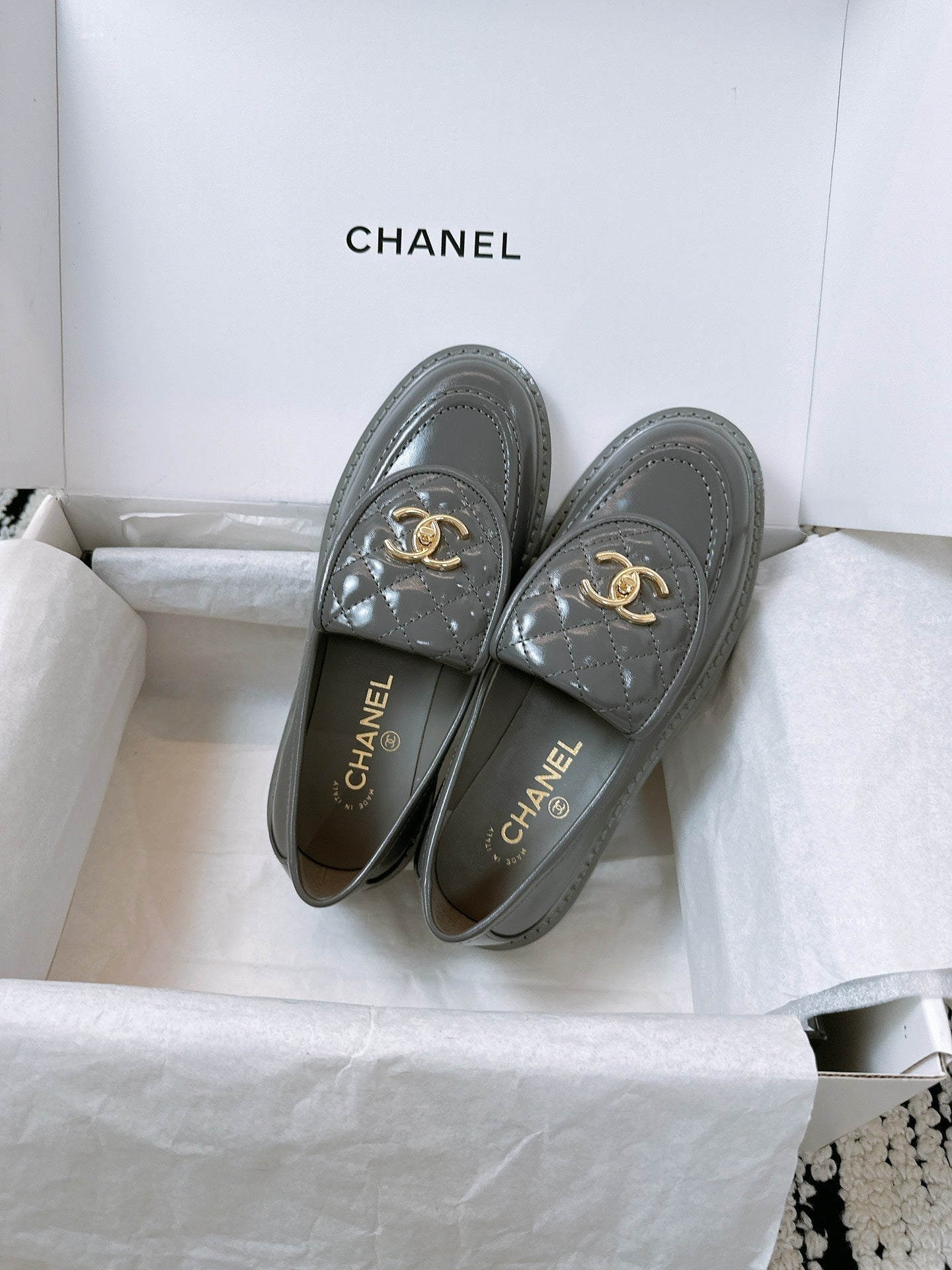 CC Moccasins 25mm In Grey Glossy Lambskin 144641
