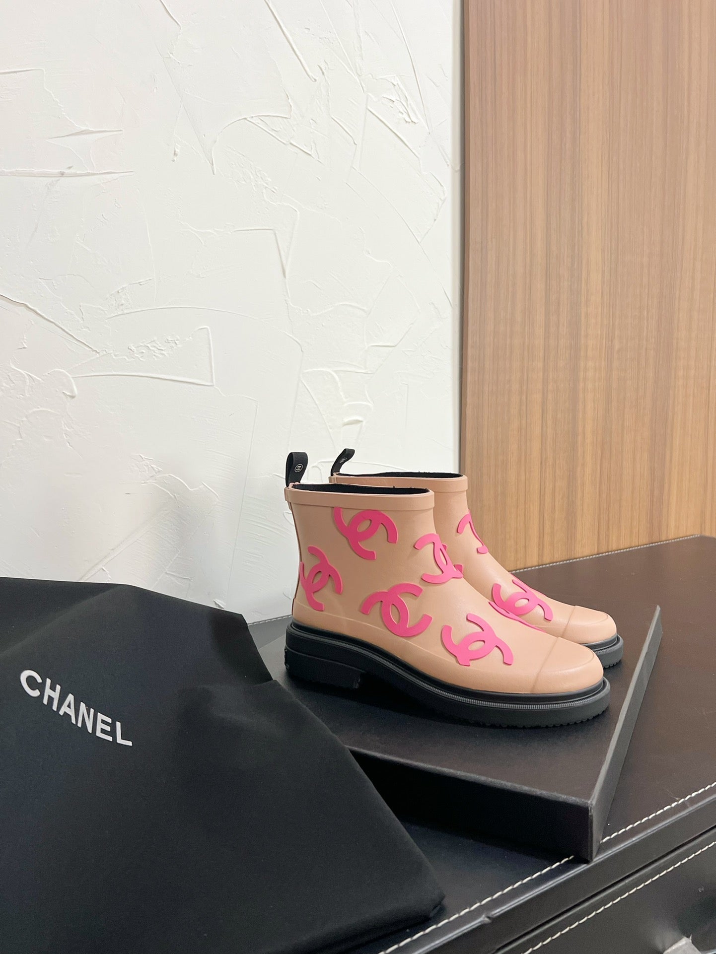 CC Rain boots In Beige With Pink Logo Natural Rubber 949792