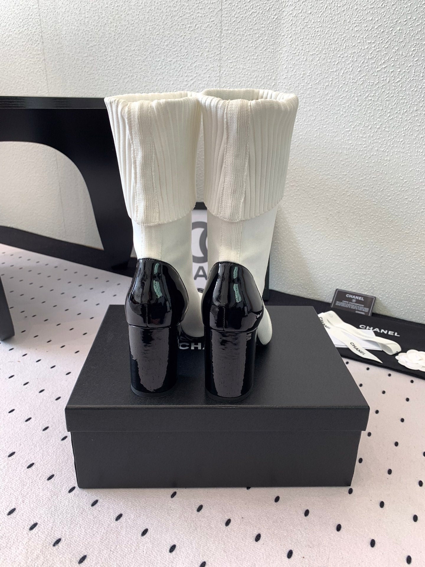 CC Short Boots 85mm White Black Wool Mix Glossy Cowhide 938069