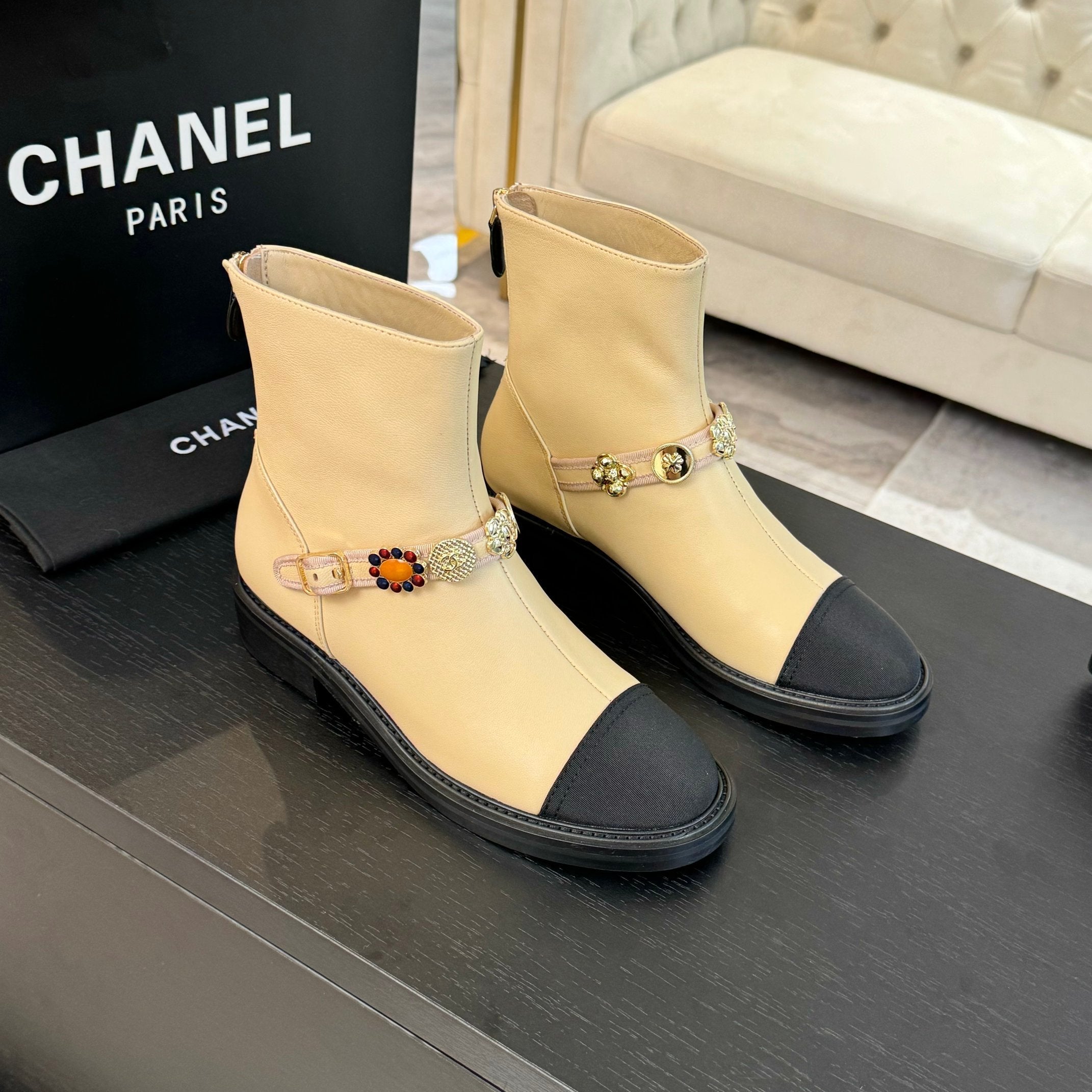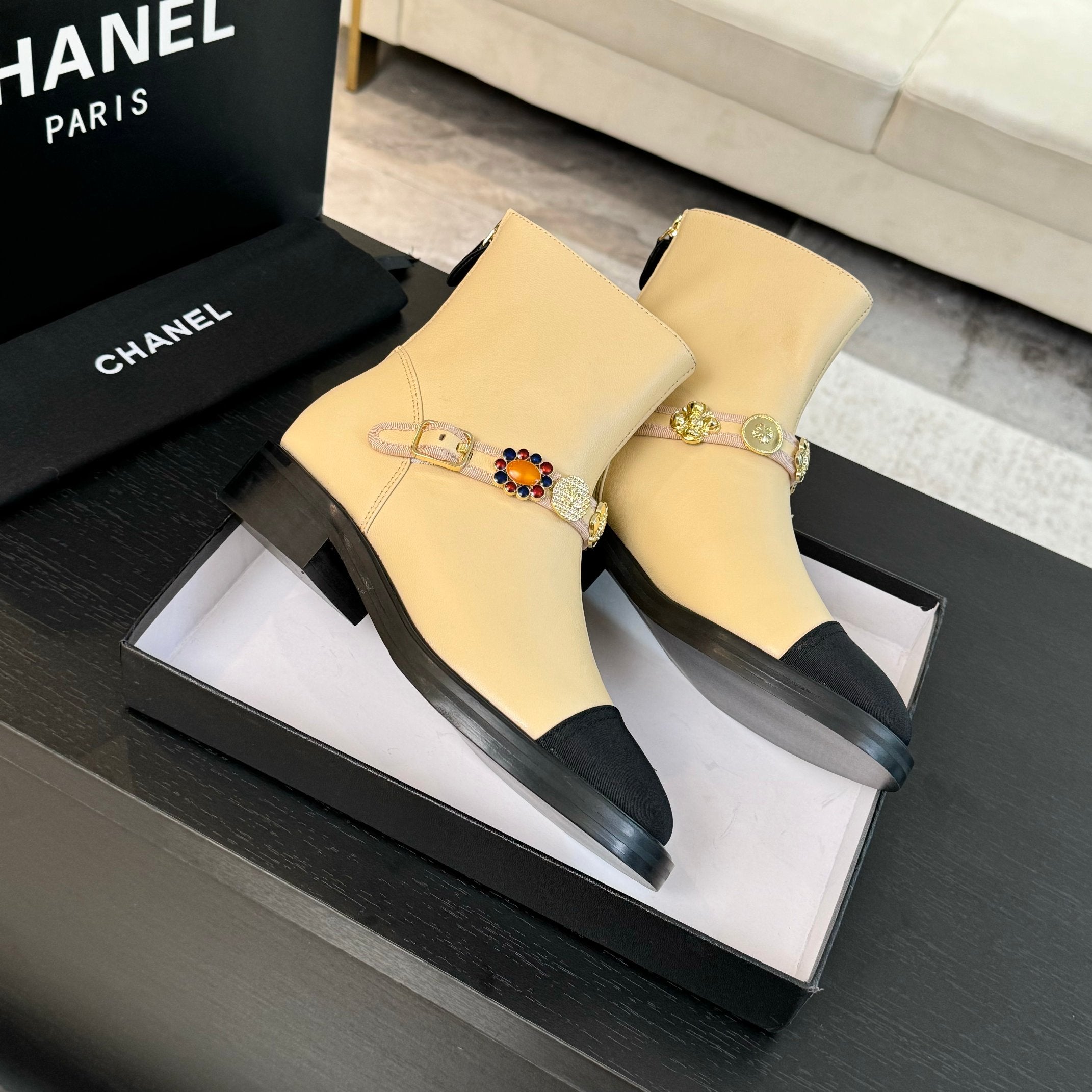CC Short boots Beige Cowhide Mix Fabric Denim