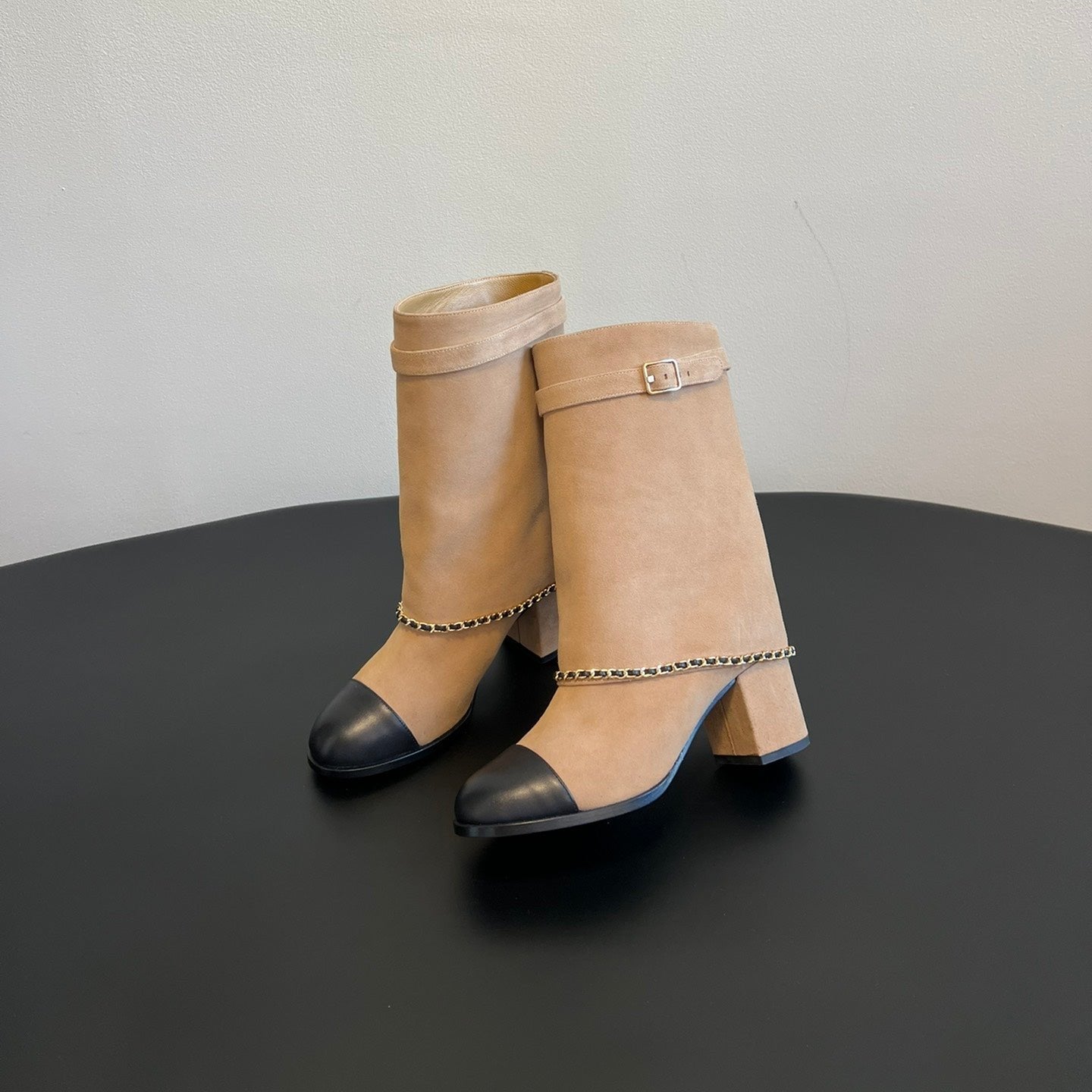 CC Short Boots Dark Beige With Chain Suede And Cowhide 944965