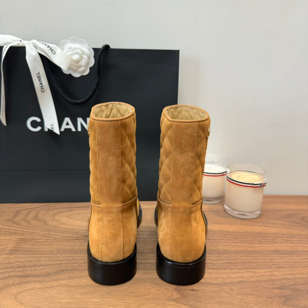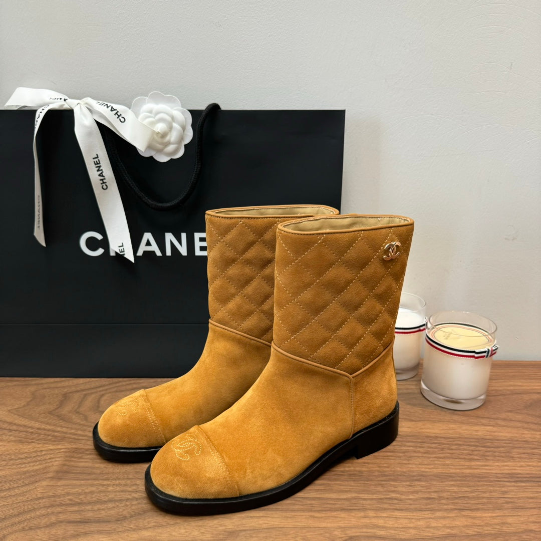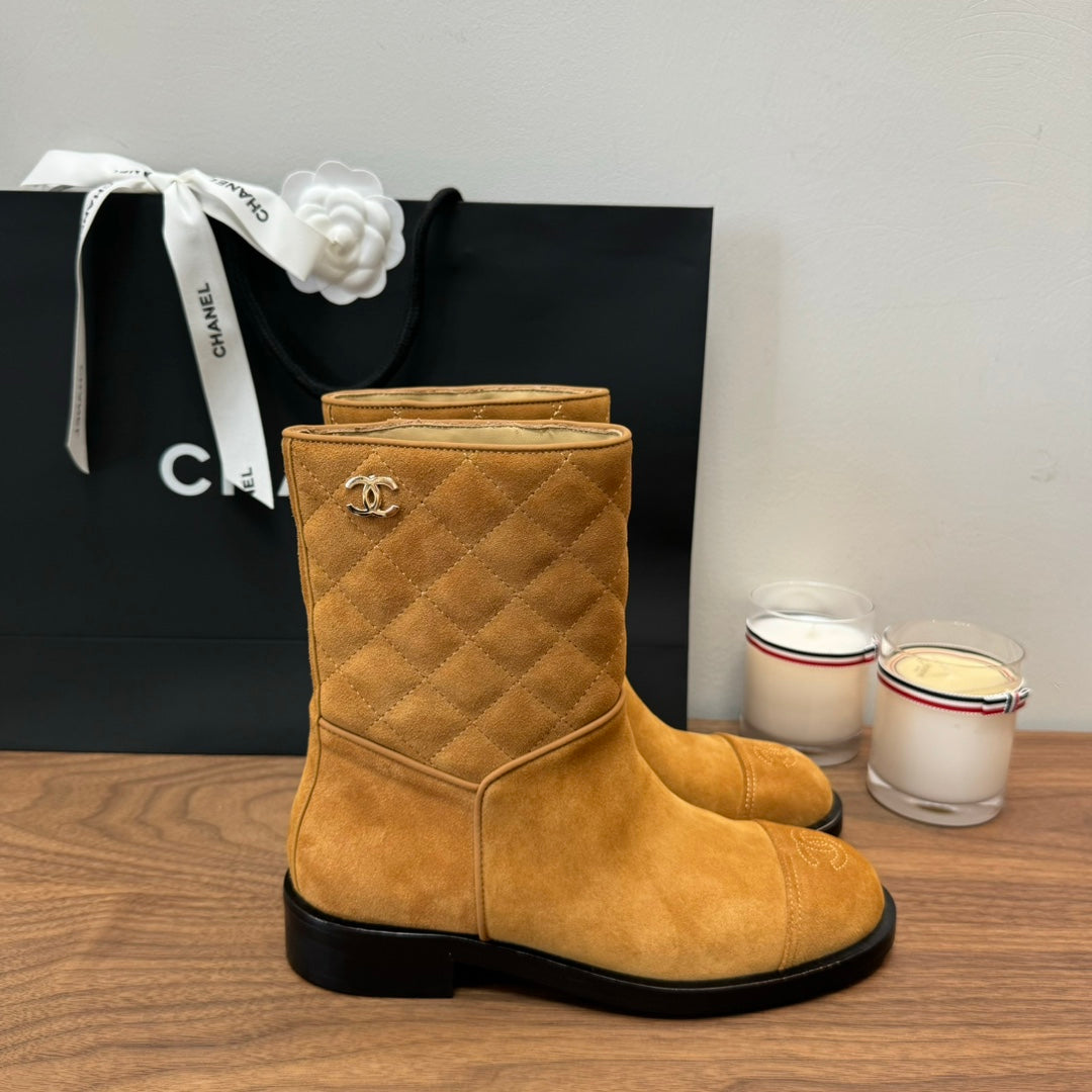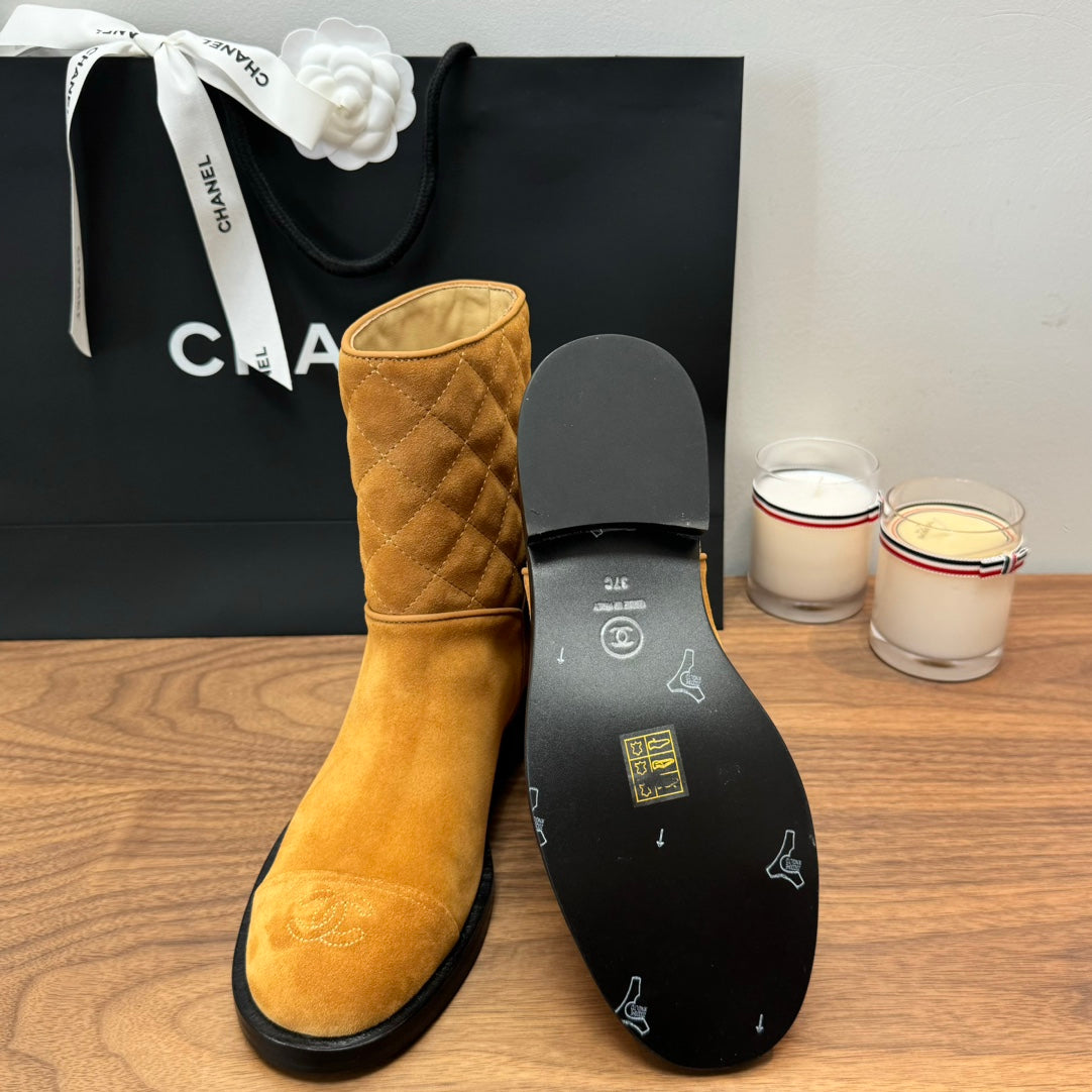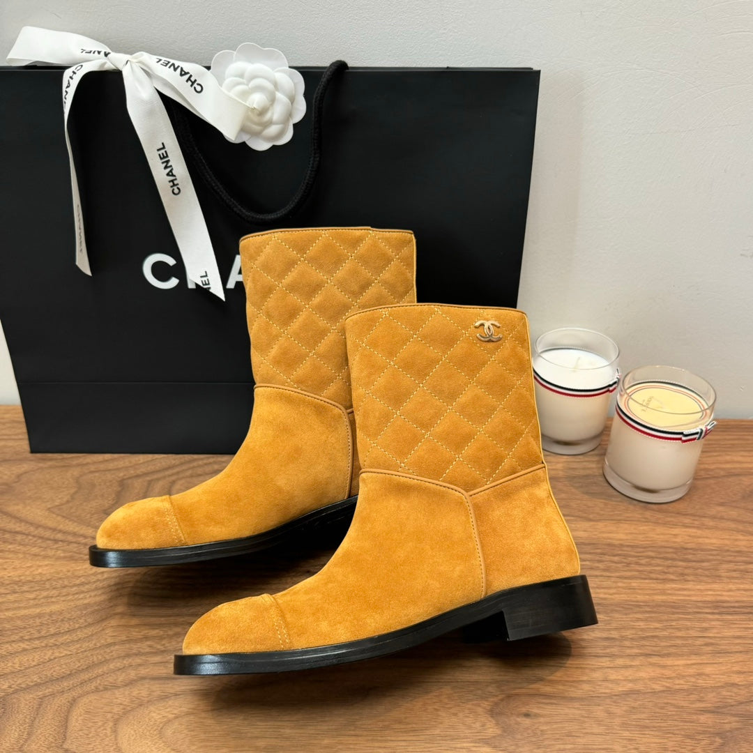 CC Short Boots Yellow Quilted Suede