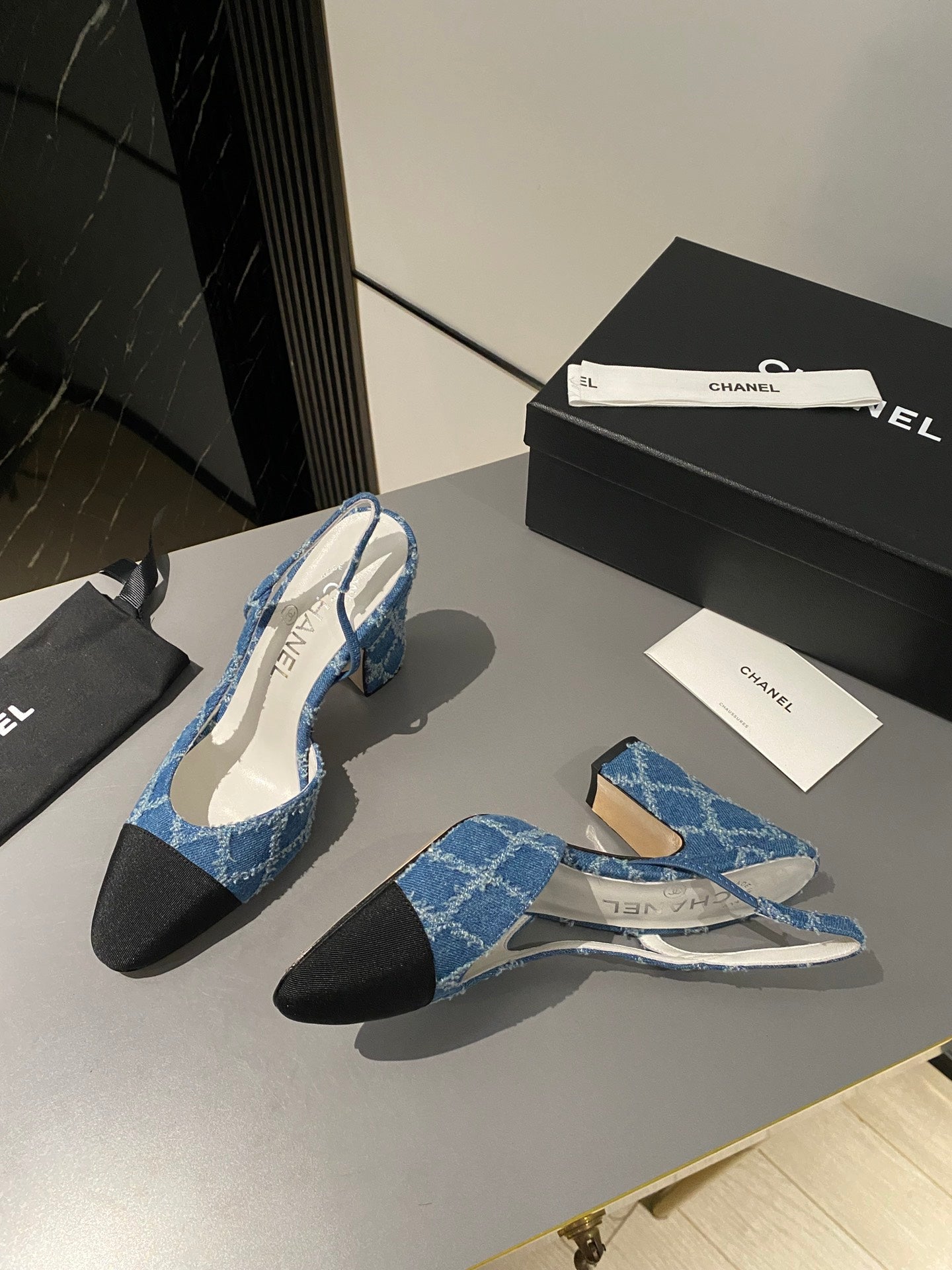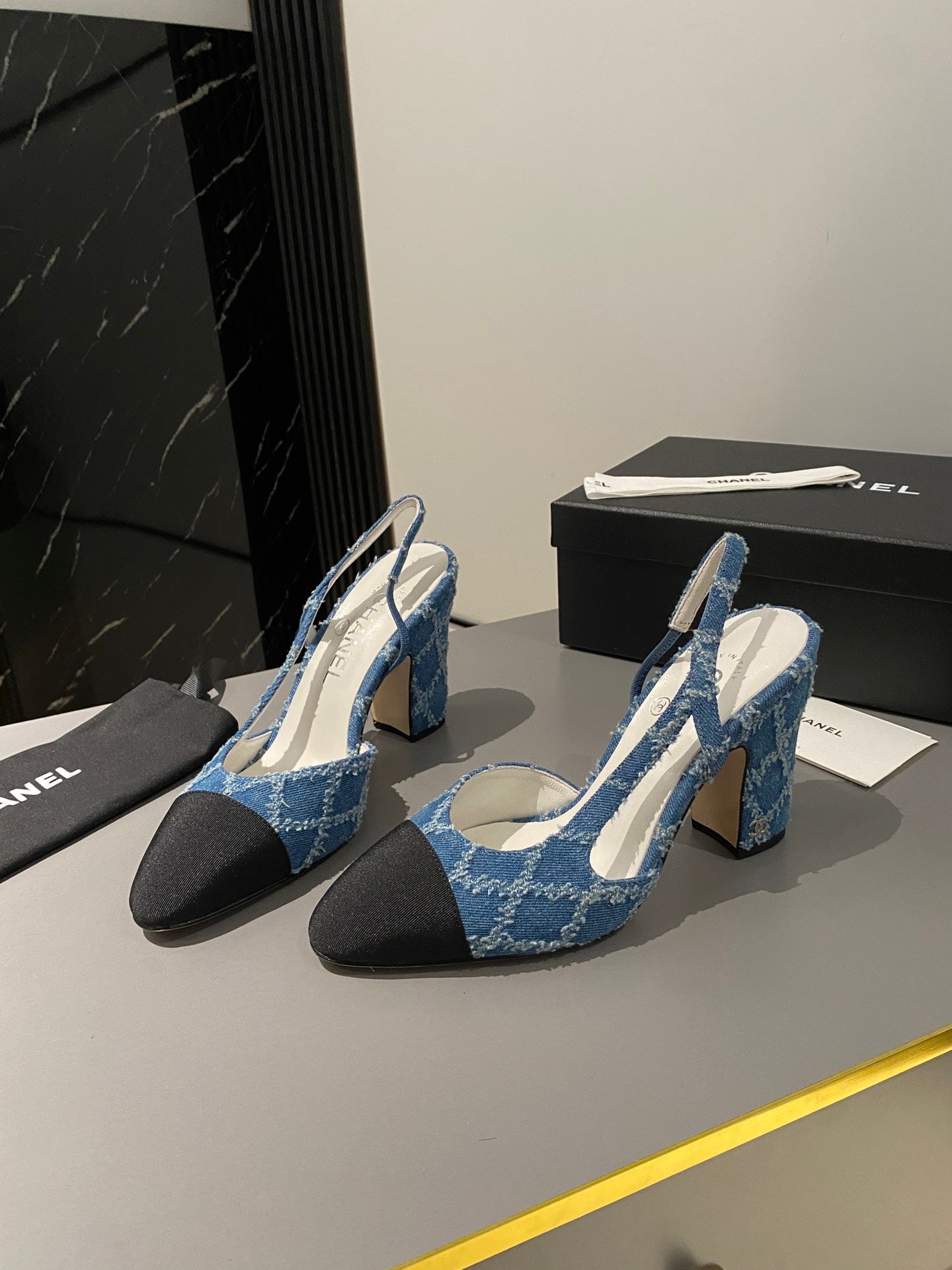 CC Slingback 95mm Dark Blue Tassel Denim Fabric