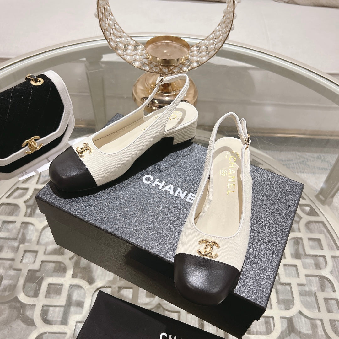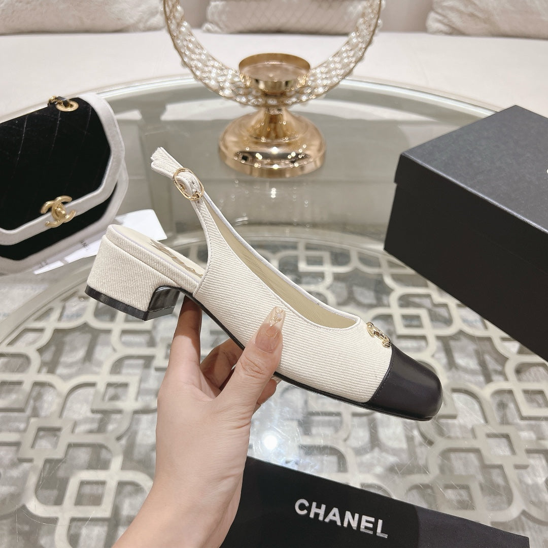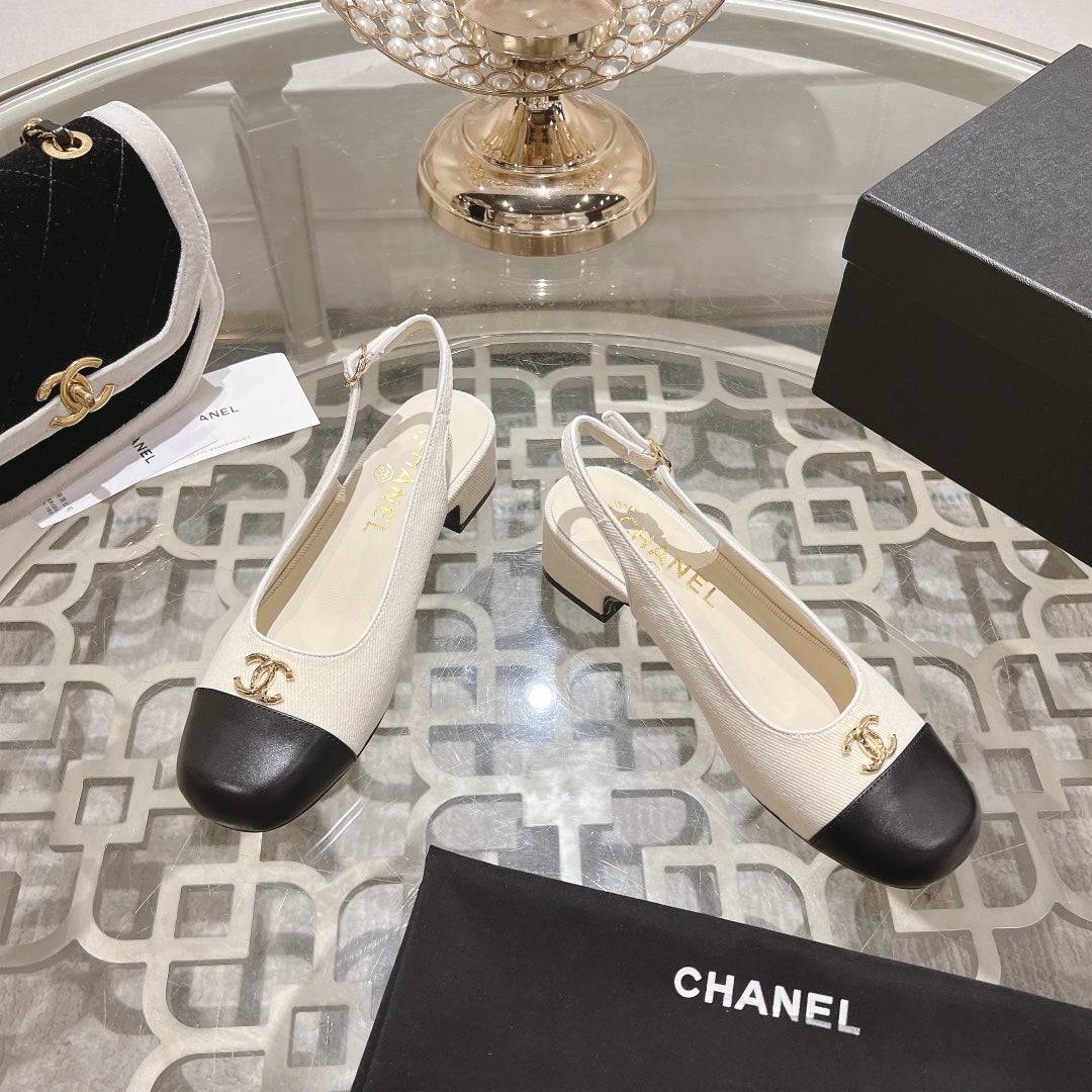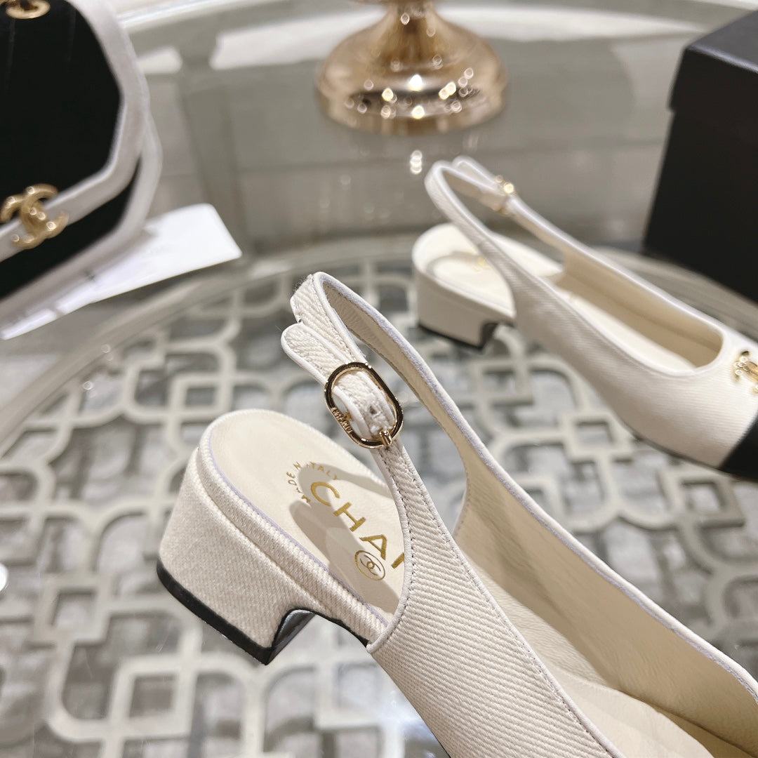 CC Slingbacks 35mm In Ivory White Mix Black Lycra Fabric And Lambskin 943263