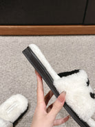 CC SLIPPERS IN WHITE MIX BLACK FLEECE