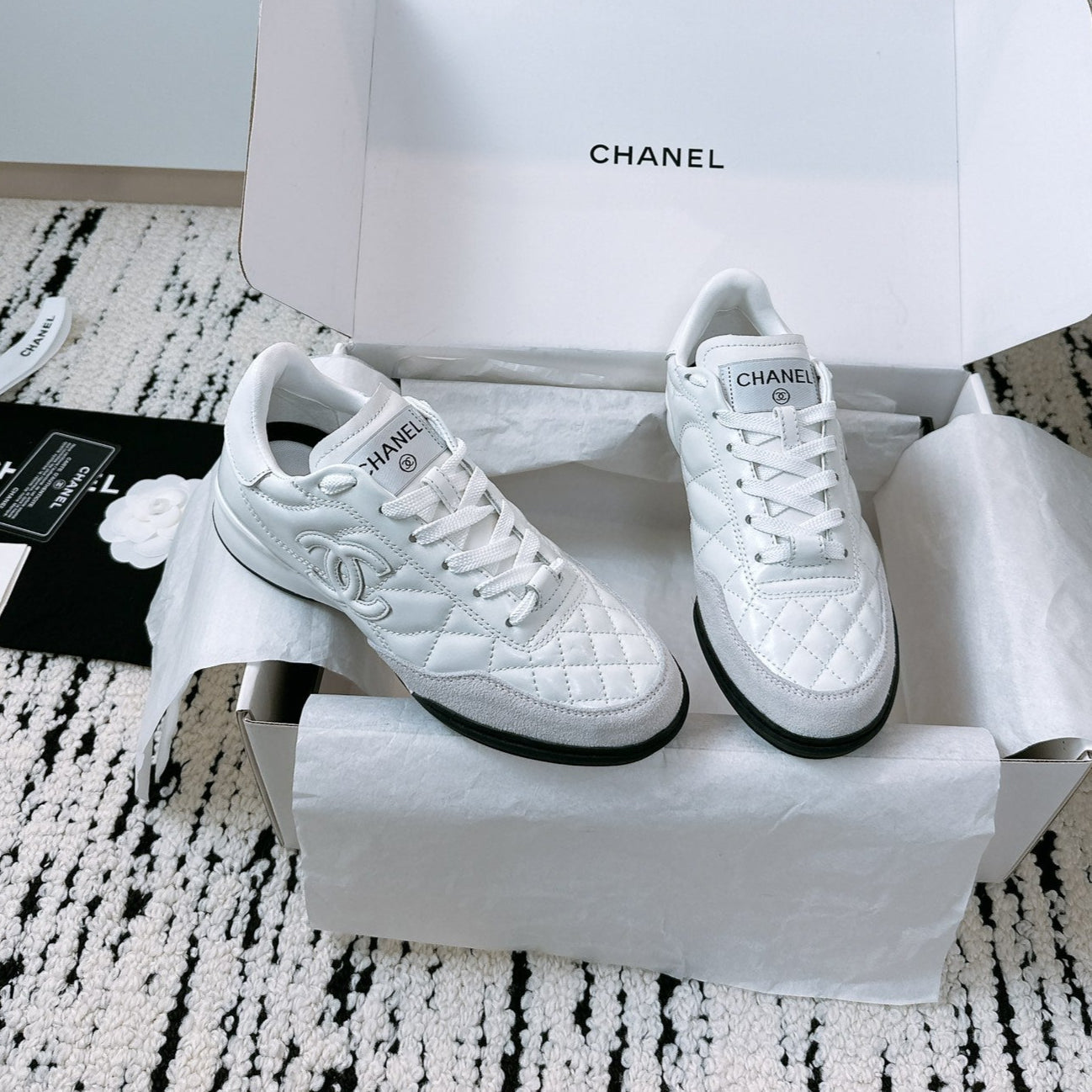 CC Sneaker In White Lambskin Quilted 144679
