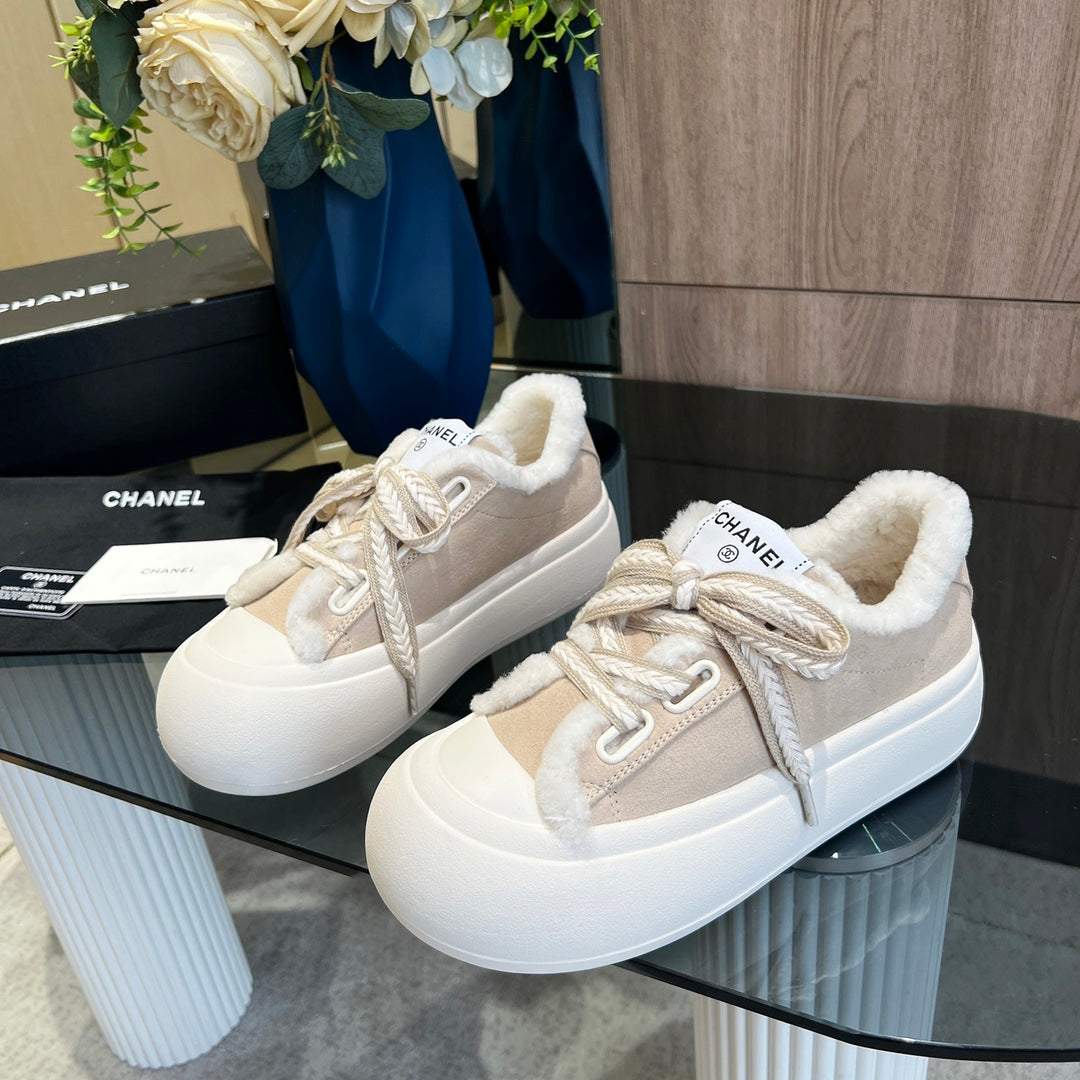 CC Sneaker Thick-Soled Beige Suede Wool Lining Fleece