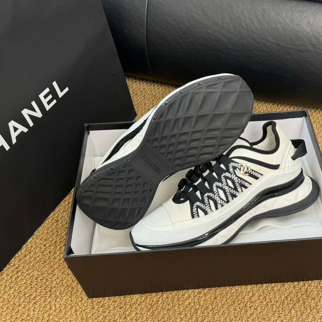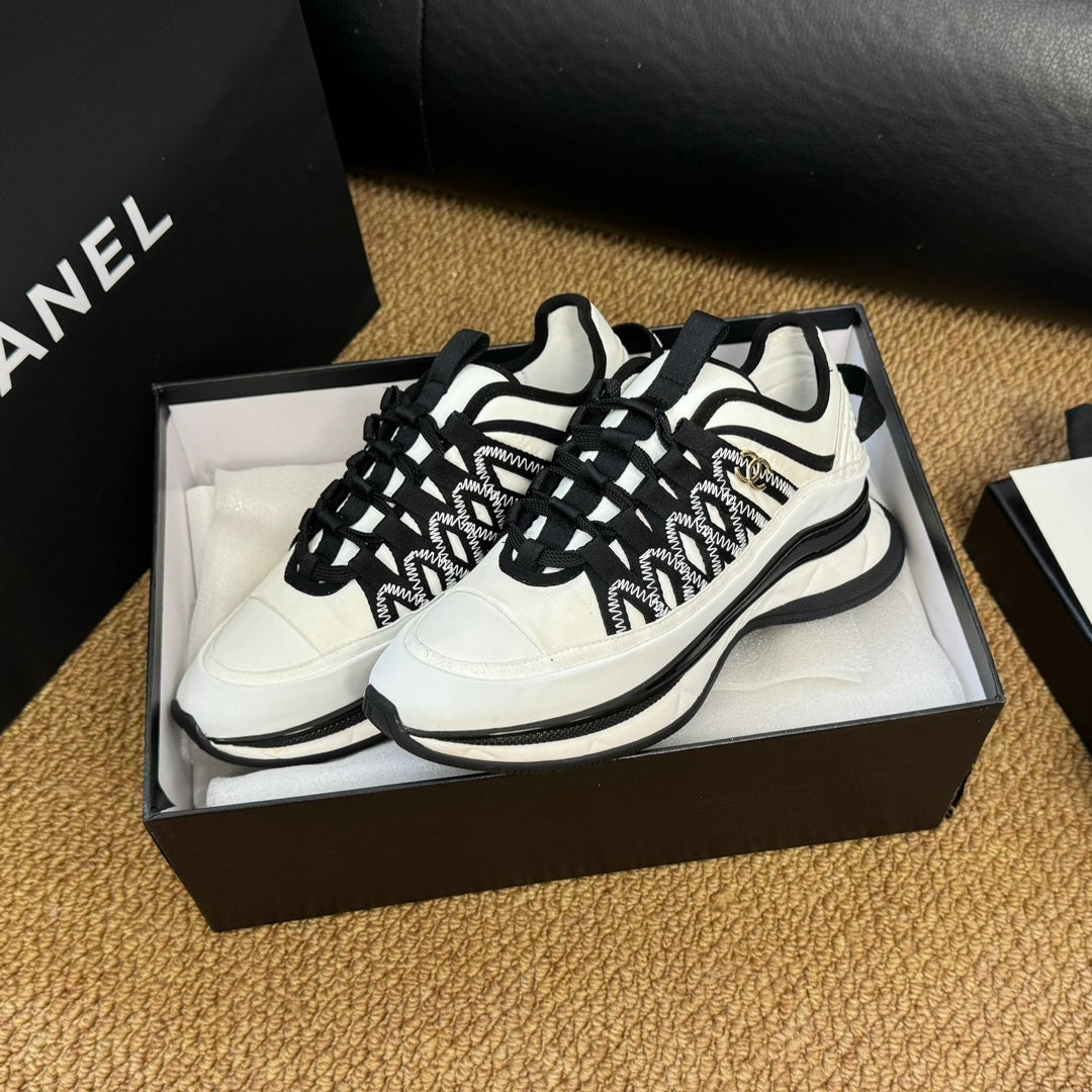 CC Sneaker White Mix Black Calfskin And Silk Parachute Fabric 947510
