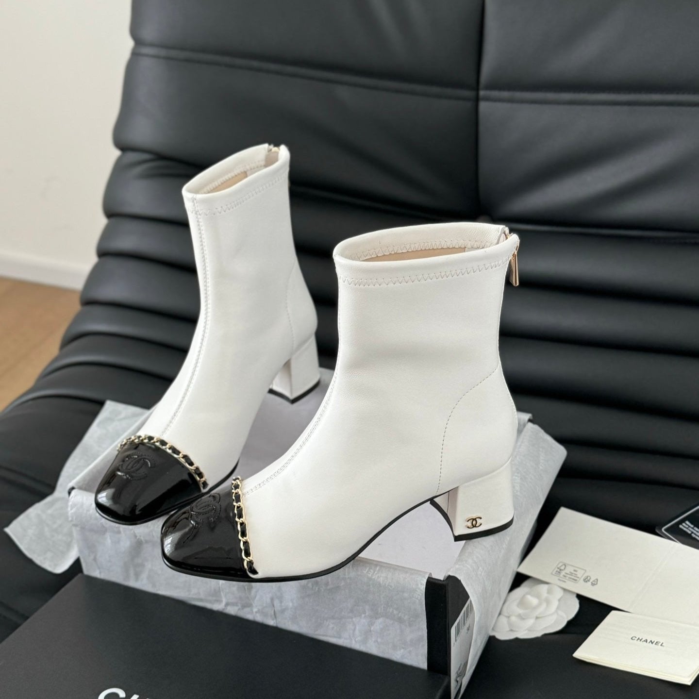 CC Ankle Boot White Calfskin Black Patent Calfskin