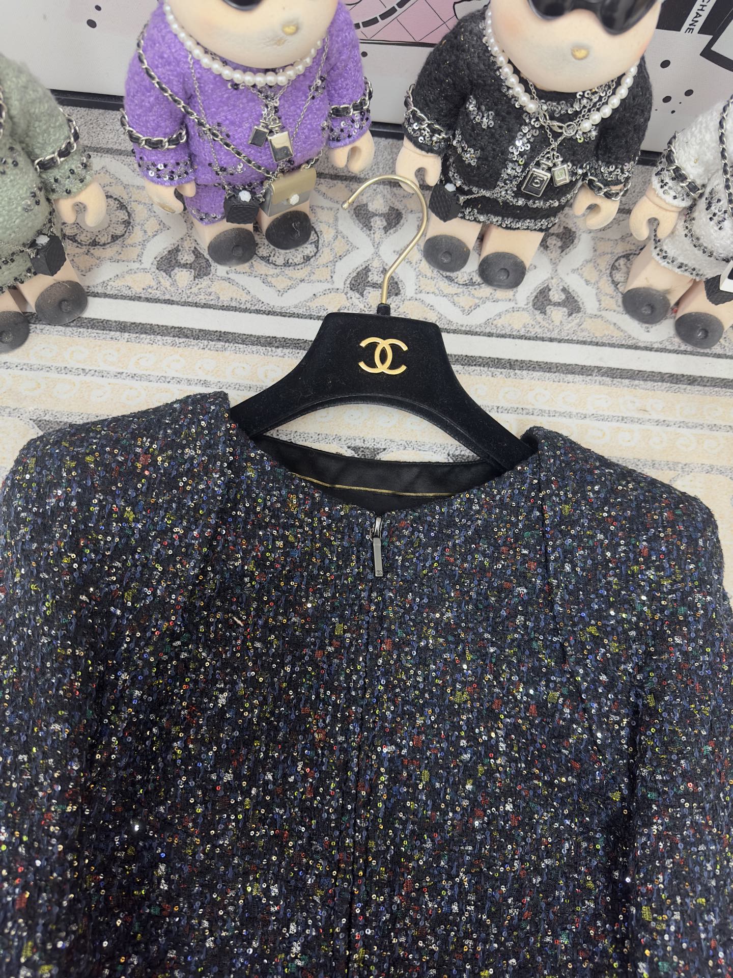 CC Tweed Short Sleeve Dress Multicolor Polyester Polyamide 251864