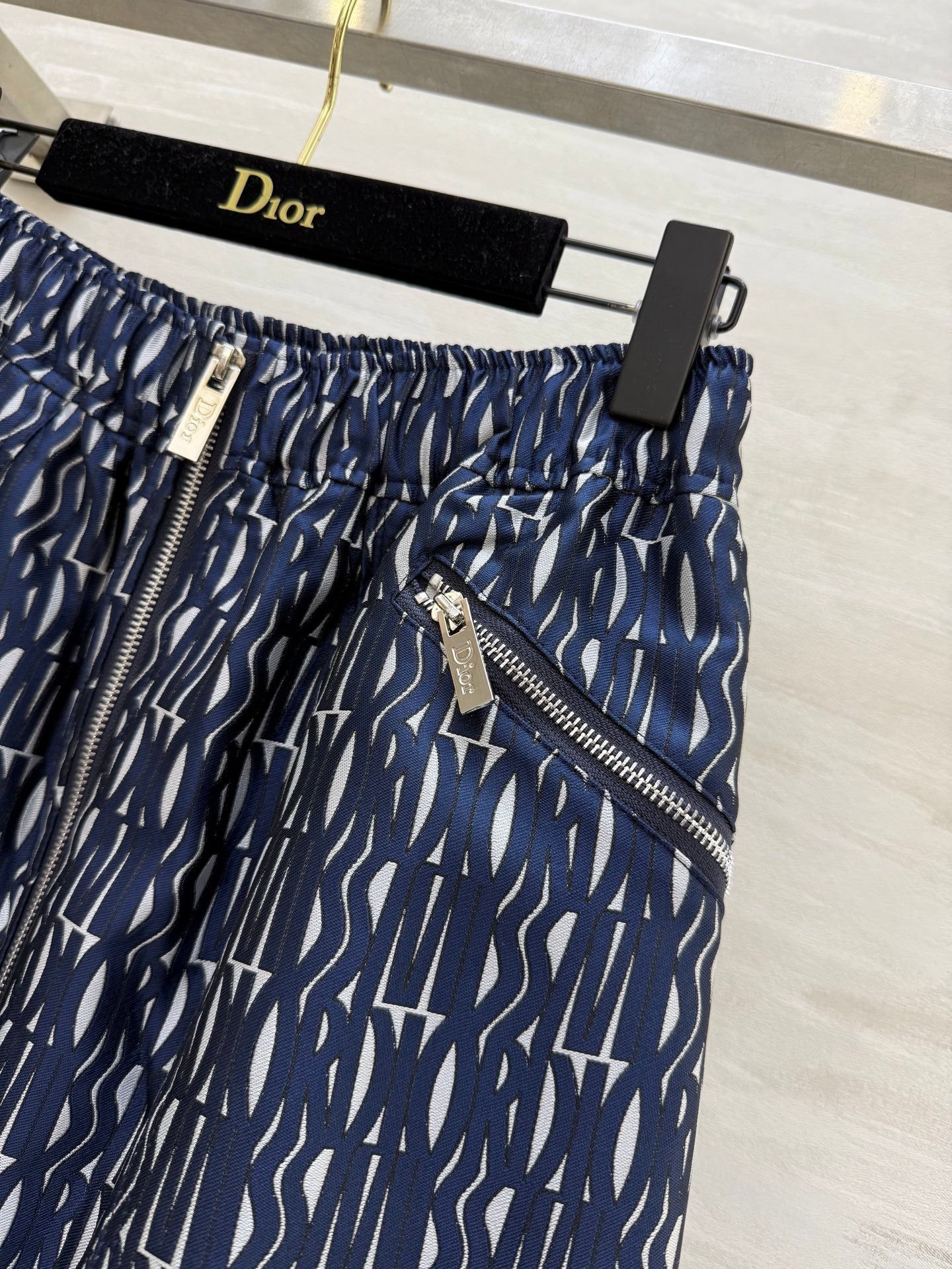 CD 2025 Letter Long Skirt Blue Jacquard Canvas