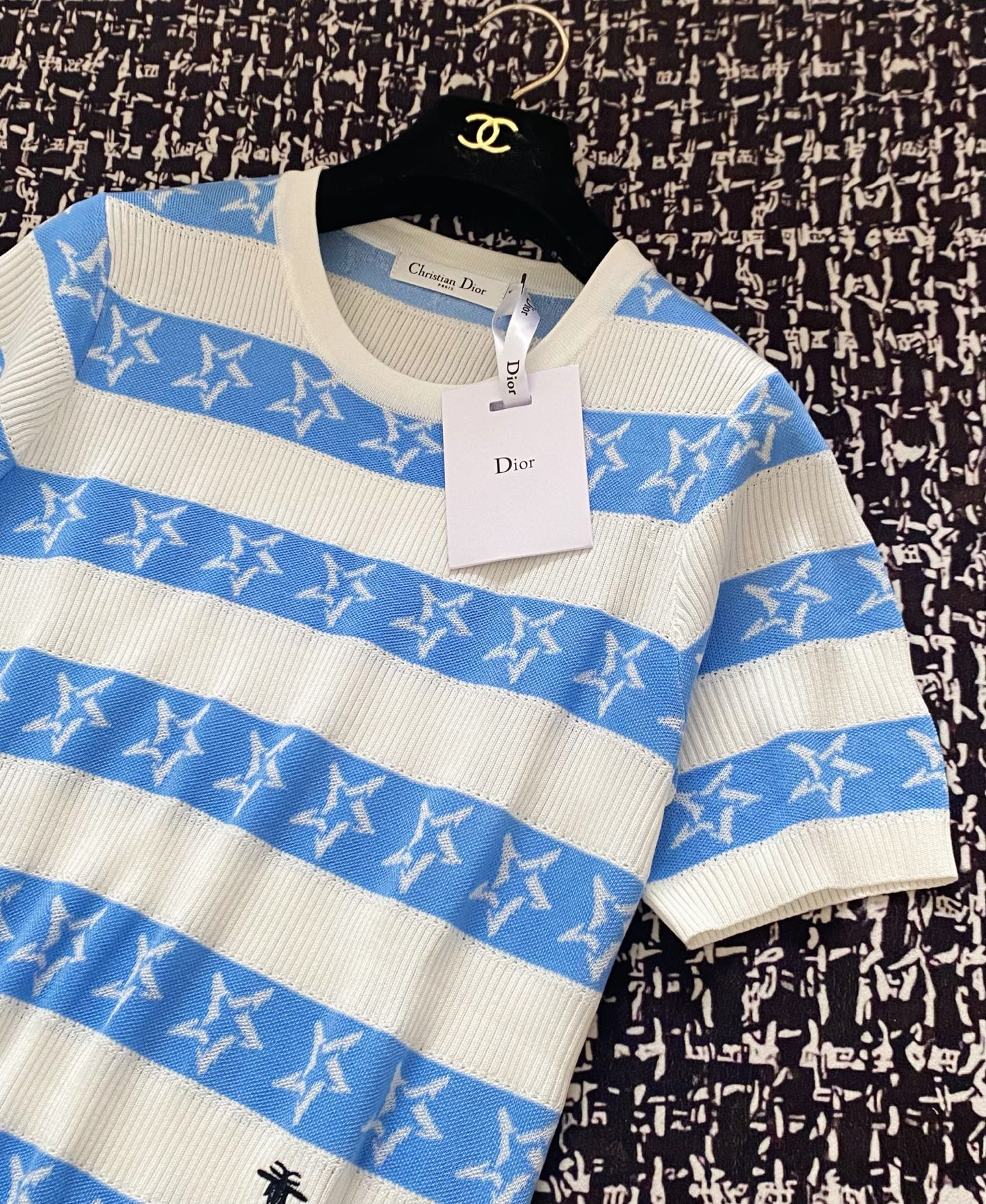 CD 2025 Striped Short-sleeved T-shirt Blue White tencel 606659