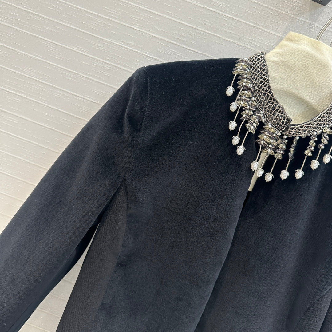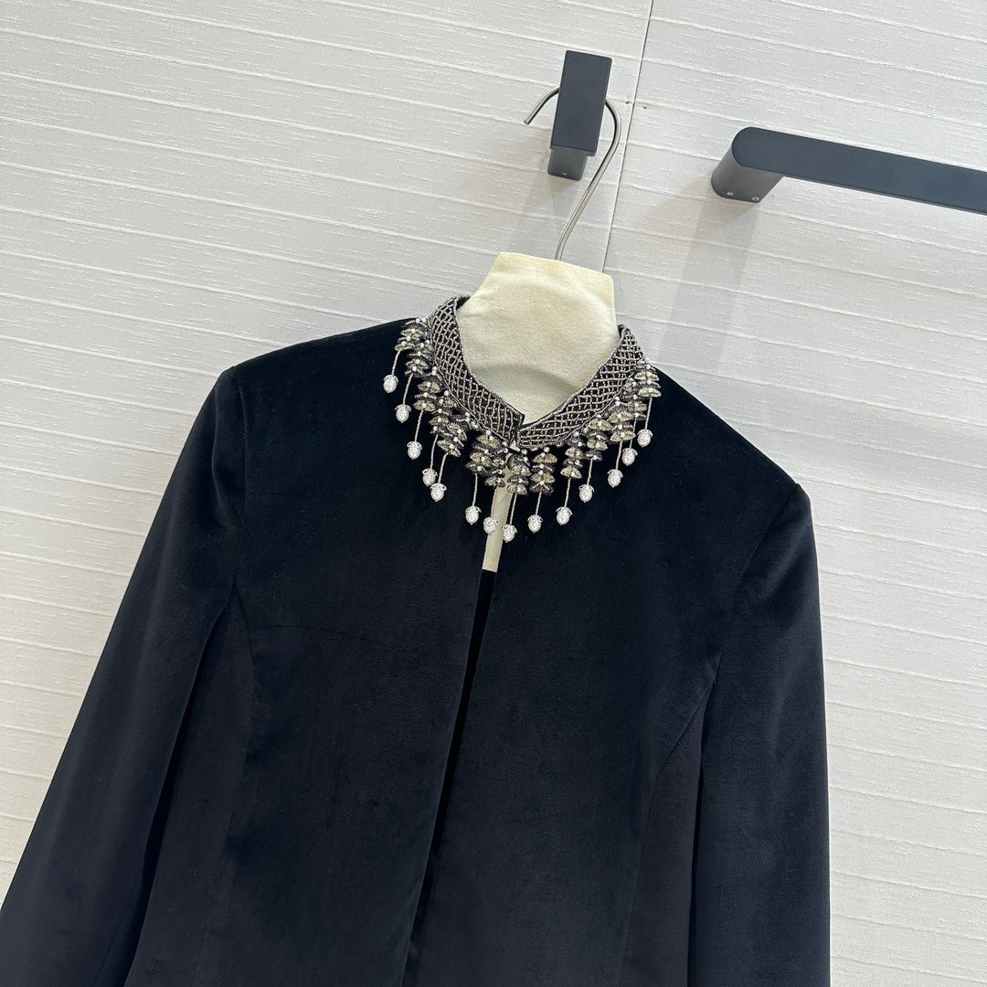 CD 25 Beaded Collar Small Jacket Black Silk Velvet